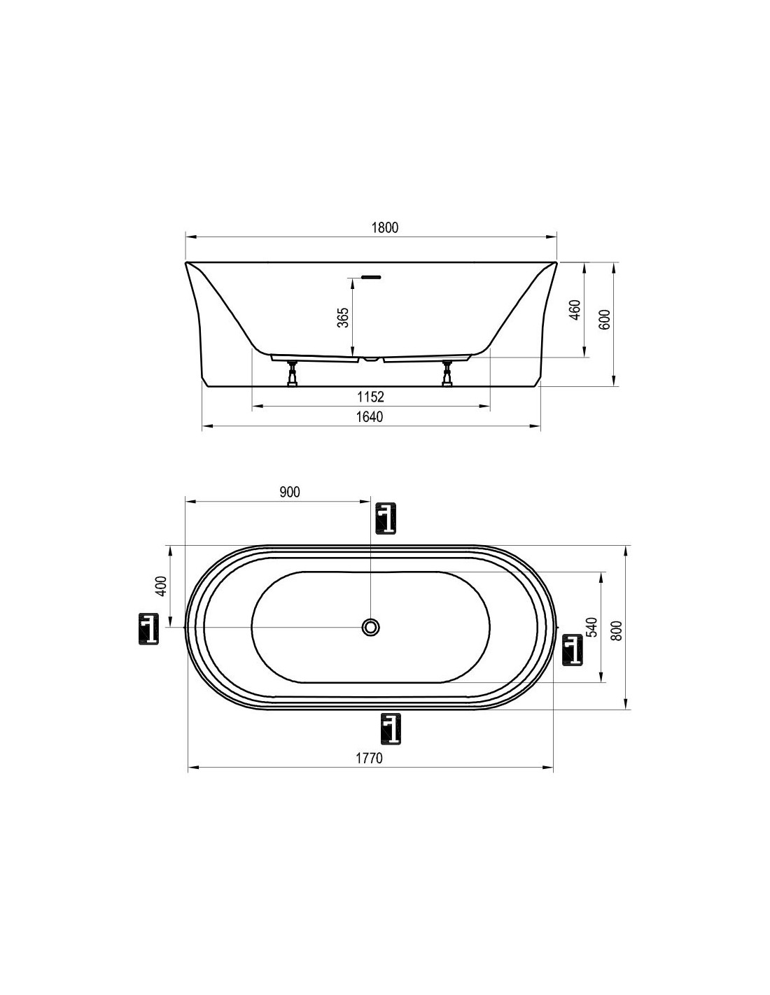 Pačioje vonioje negalima įtaisyti vandens maišytuvo. Visos išleidimo ir pripylimo angos turi būti per grindis (tiek vandens maišytuvų, tiek kanalizacija). Komplekte yra vonios nutekėjimo rinkinys (t. y. perpildymas, sifonas, kvapo gaudyklė) ir atrama (kojos). Ypsilon vonią siūlome derinti su maišytuvu FM 080.00, kuris įmontuojamas į grindis.