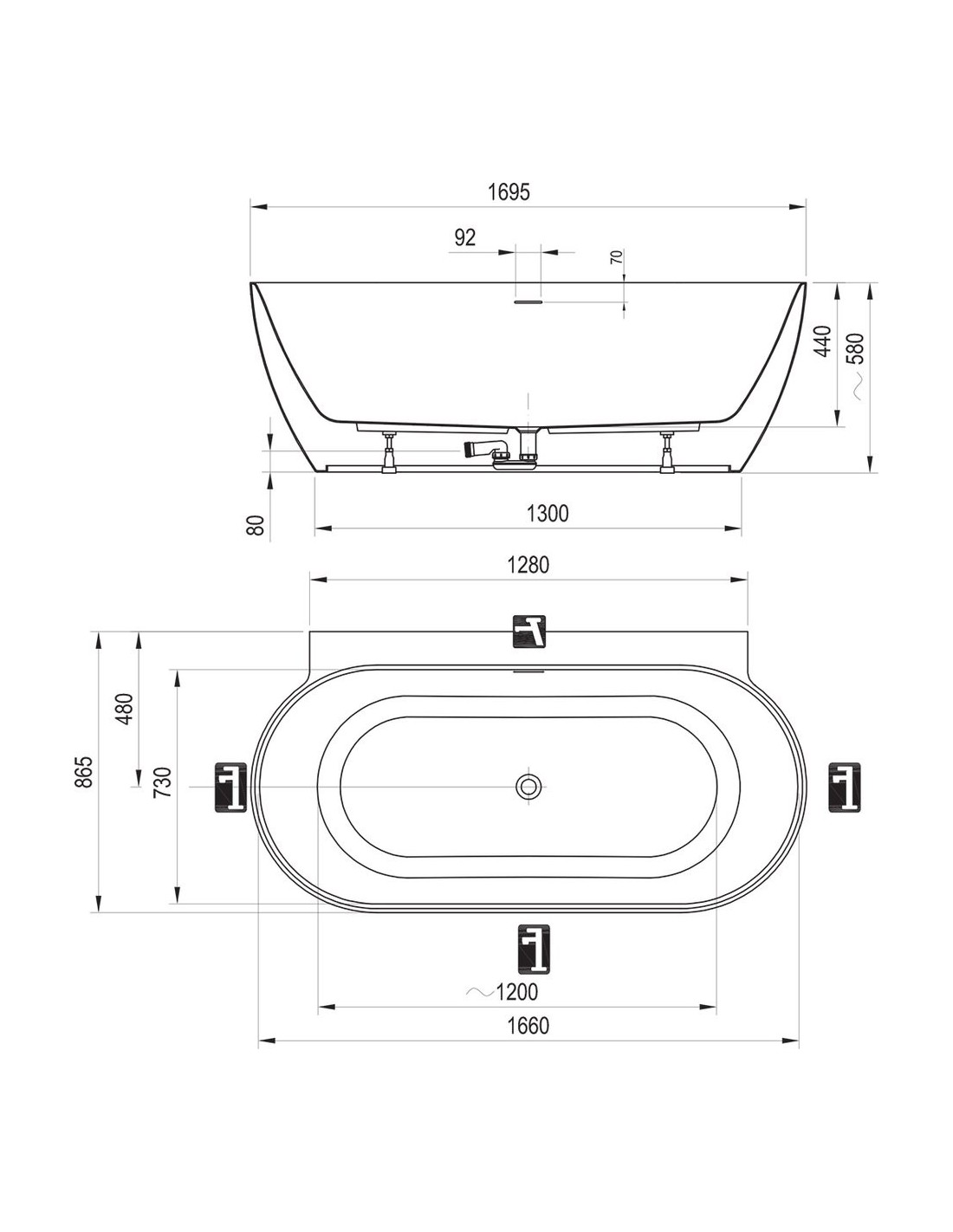 Voniai Freedom Wall II Tec netinka nė viena vonios sienelė. Visos komunikacijos turi būti nutiestos žemiau grindų lygio (nuotėkis, šalto/karšto vandens išvadai grindiniam maišytuvui).