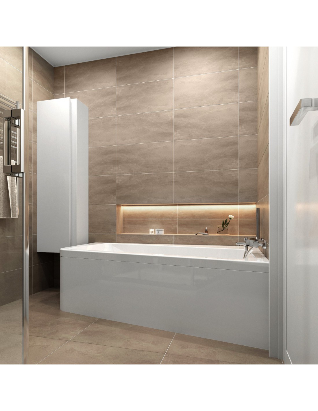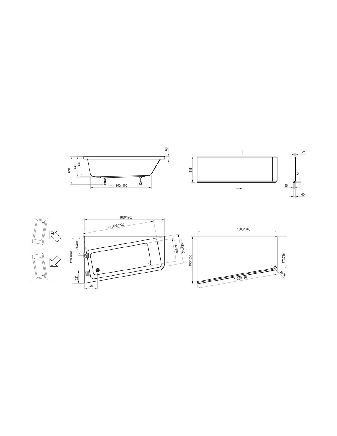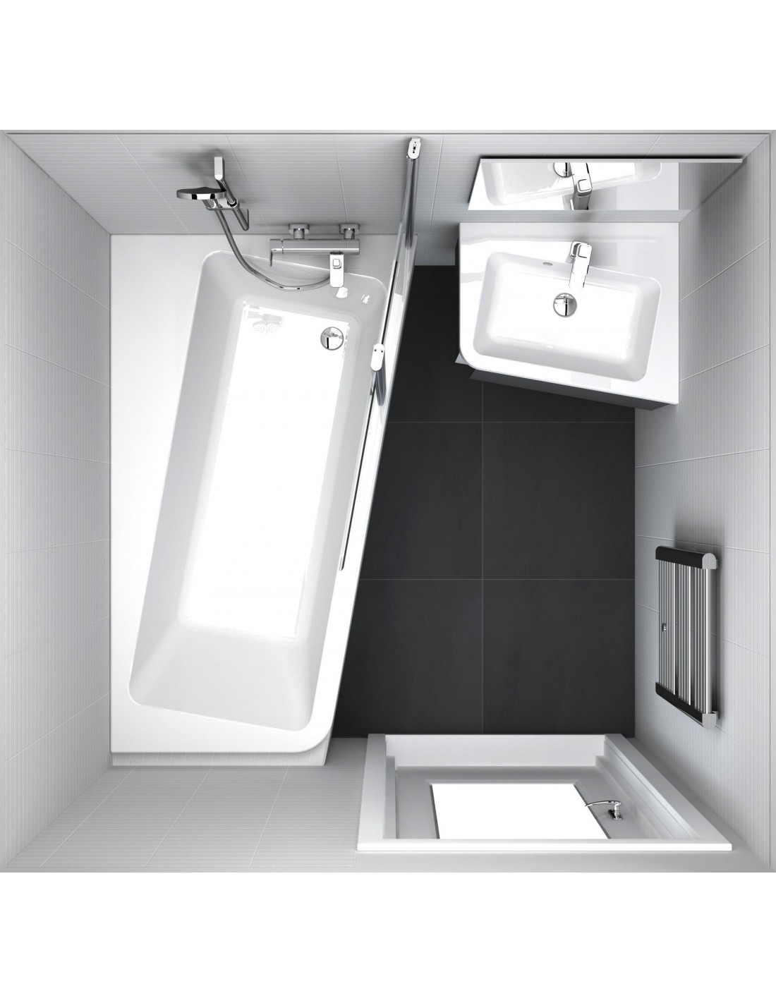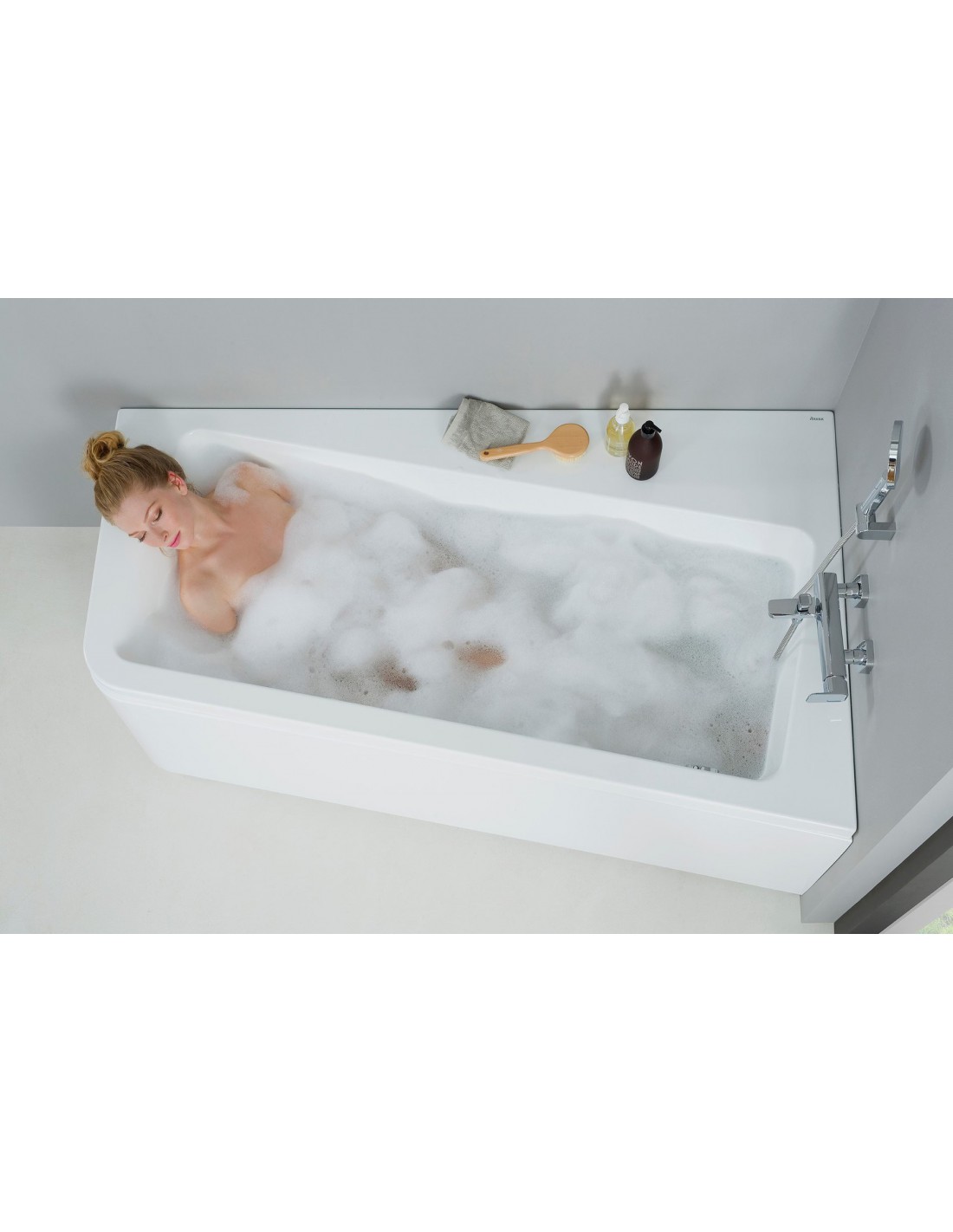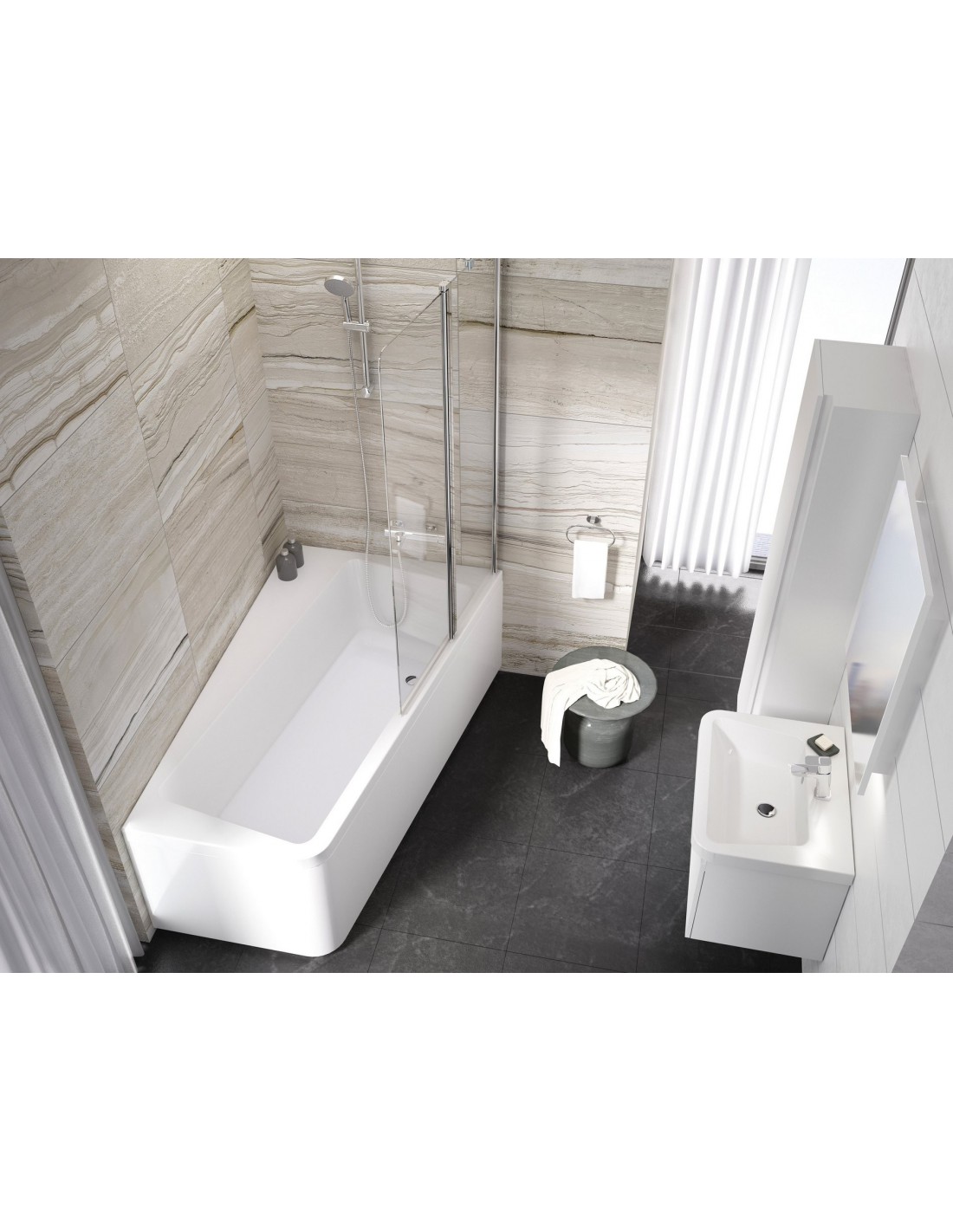 Asimetrinė 10° vonia sujungia vonios patogumo ir dušo praktiškumo privalumus. Pasukta padaro erdvė, kurią galėsite panaudoti kaip sėdynę patogiam dušui ar vonios reikmenų laikymui. Dešininė versija.