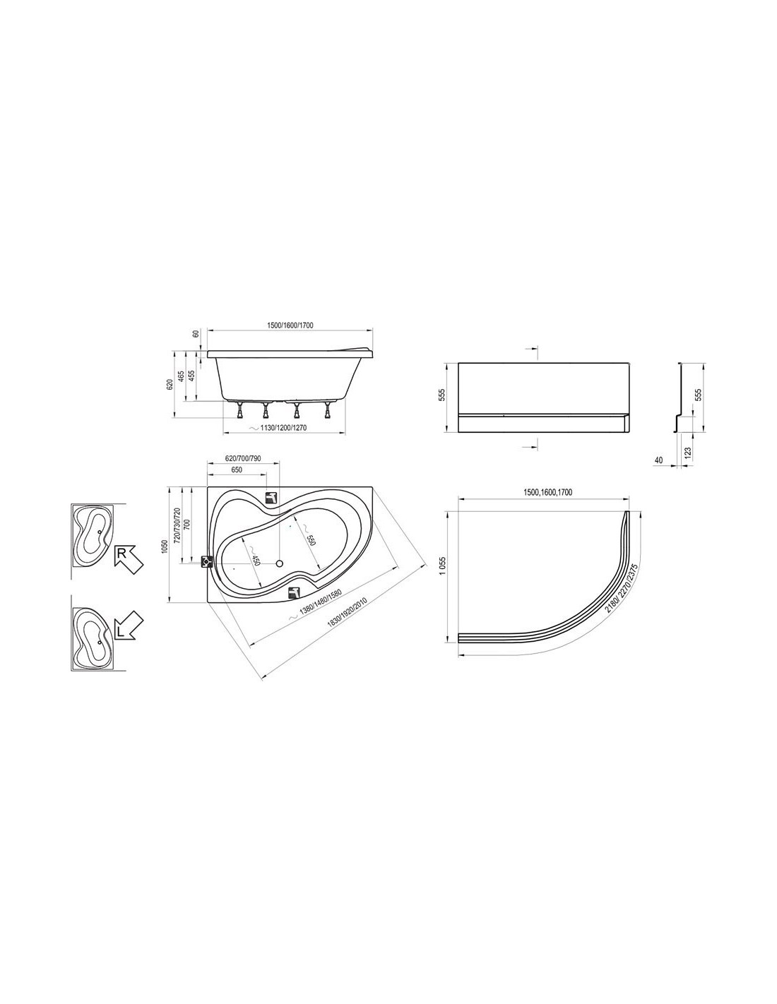 • papildomi priedai: atrama, priekinė panelė, vonios nutekėjimo komplektas, vonios maišytuvas „krioklys“ RS 025