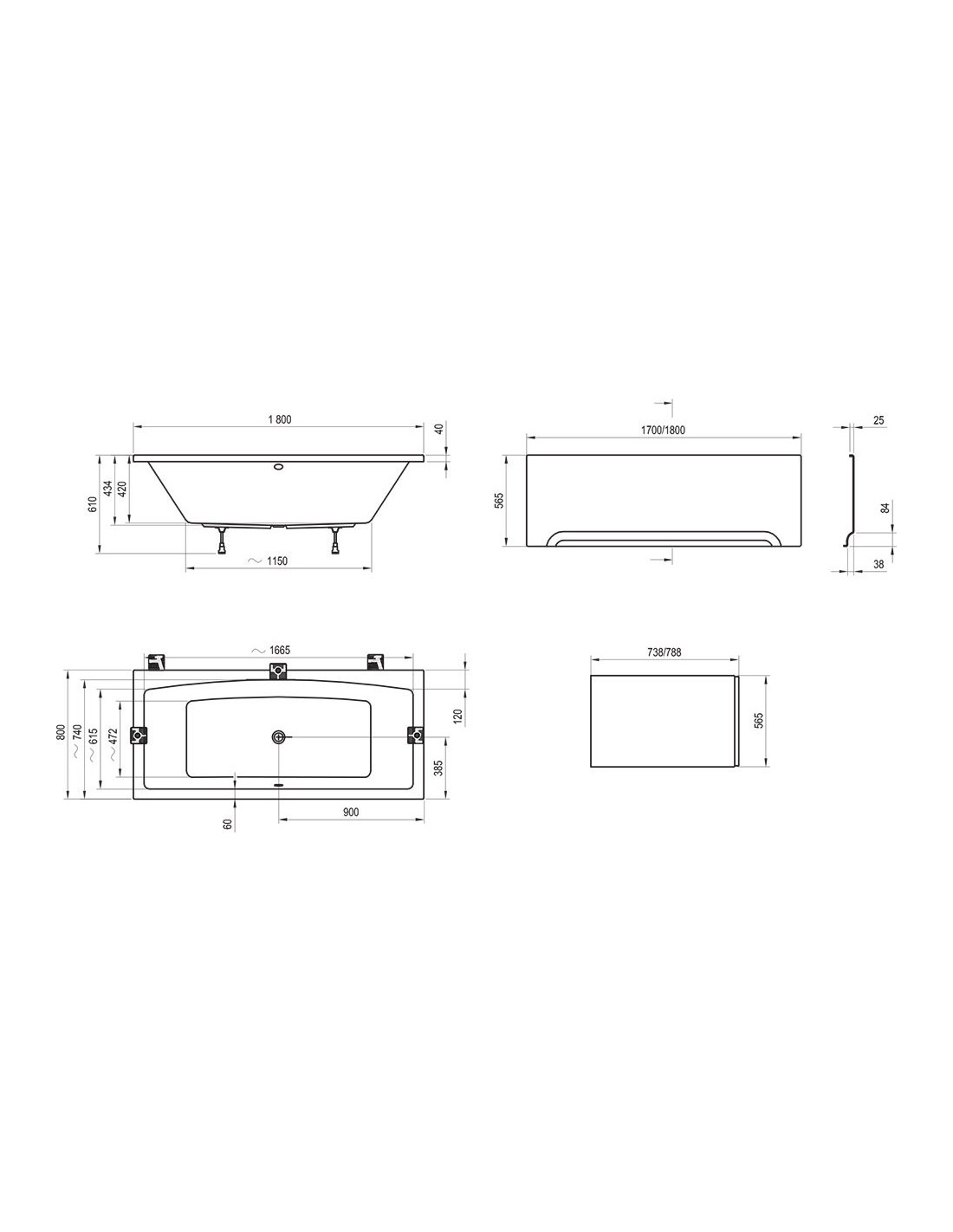 Vonią galima papildyti vonios sienele CVS2, VS2, VS3, VS5, PVS1, NVS1, BVS1, BVS2. Prie vonios galima įsigyti priekinį ir šoninį skydelį. Reikalingas 800 mm vonios nutekėjimo komplektas.
