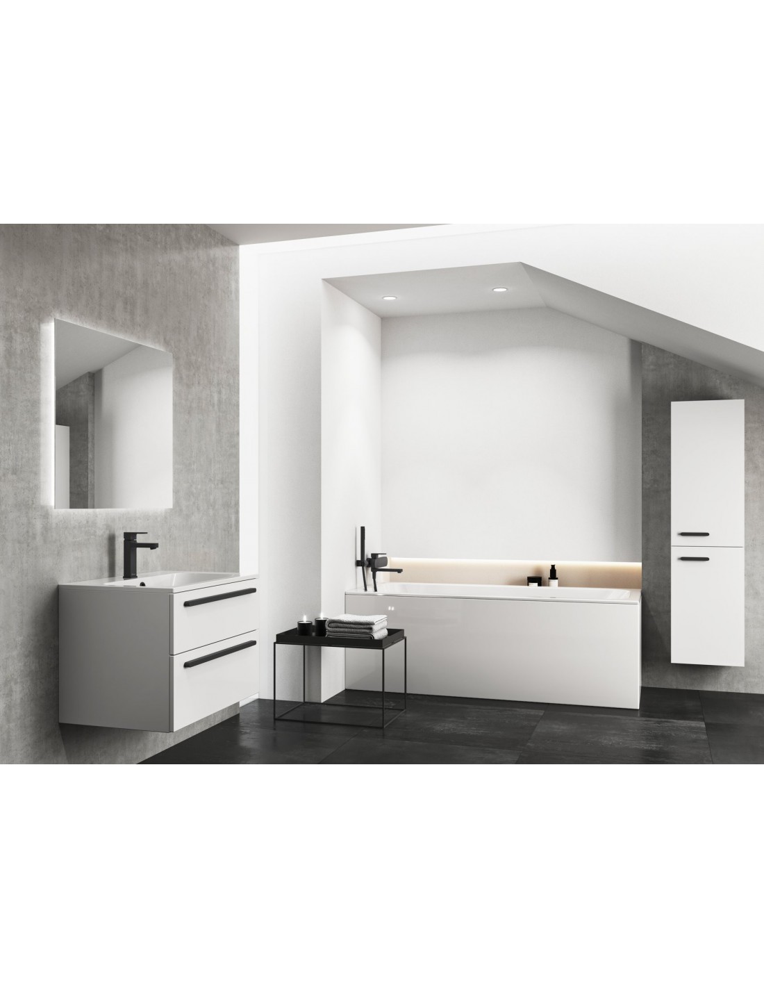 Šoninė MDF apdailos plokštė stačiakampėms vonioms, kurių plotis 70 / 75 / 80 cm. Baltos spalvos. Dešinės  arba kairės pusės variantas.
