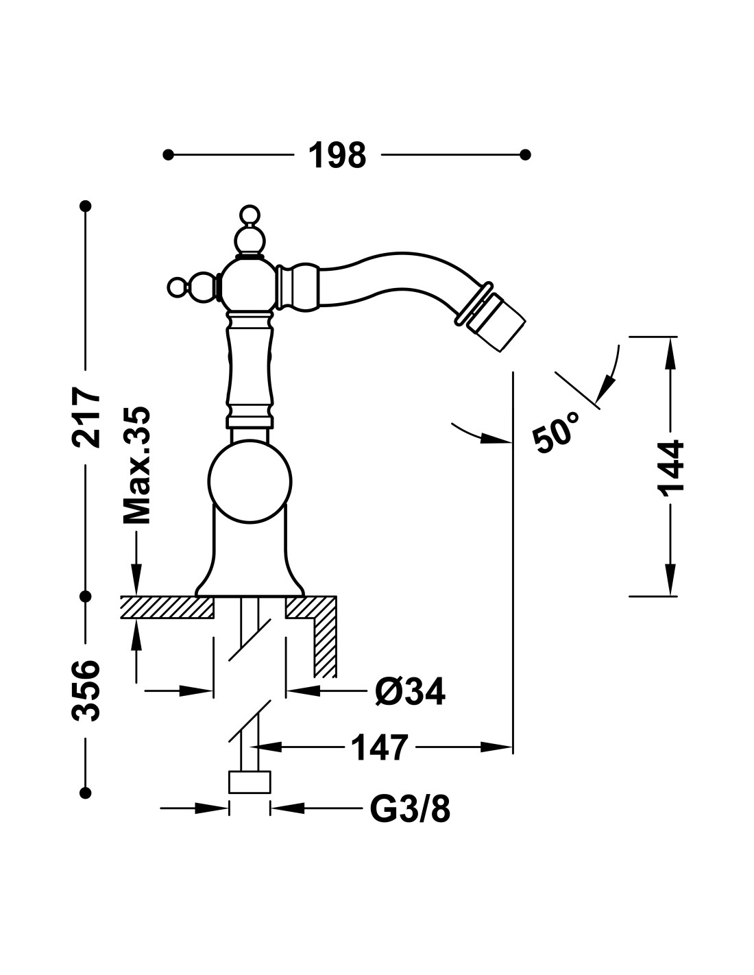Bidė maišytuvas Tres Clasic, tai išskritinio dizaino maišytuvas. Maišytuvas yra su 147 mm ilgio snapu. Maišytuvo snapas sukiojamas 360°. Kokybiškas aeratorius užtikrins, kad vanduo tekėtų tiesia srove, nesitaškydamas į šalis. Apsaugos nuo nudegimo sistema, leidžianti apriboti norimą maksimalią temperatūrą.