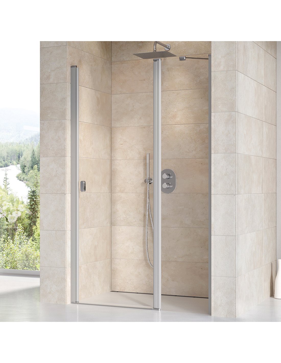 Idealus sprendimas sukurti dušo erdvę nišoje, kurios plotis 100 – 120 cm. Kad geriau vėdintųsi, durys atsidaro į vidų ir į išorę, taigi patogu įeiti ir nebūna nemalonių vandens lašų ant grindų