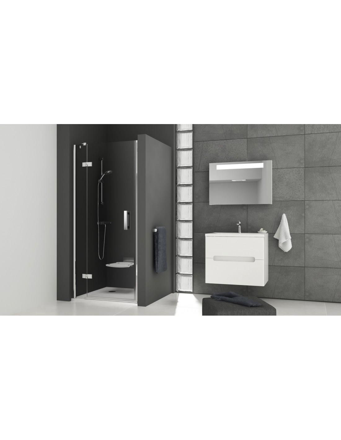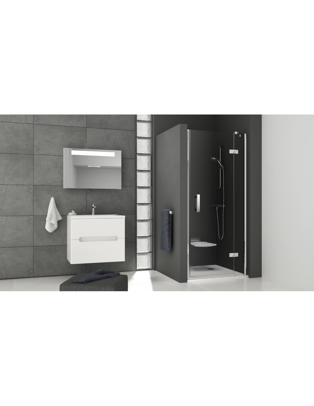 Dušo durys montuojamos į plytelėmis išklotą vonios kambario kampą (idealiai tinka į mūrinę nišą) ant Ravak Perseus Pro, Perseus Pro Chrome, Gigant, Gigant Pro, Gigant Pro Chrome padėklų arba tiesiai ant grindų su įrengtu nutekamuoju lataku.