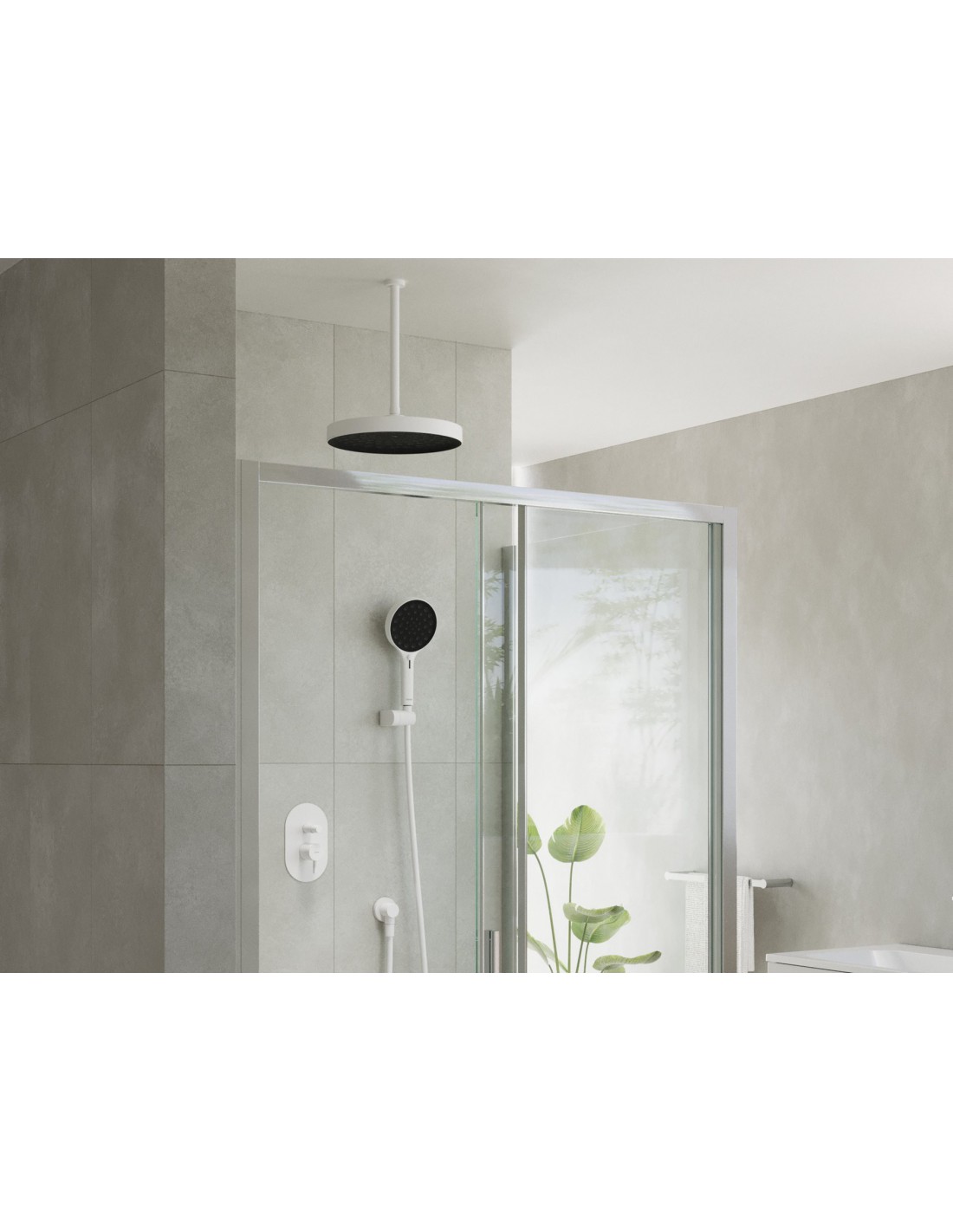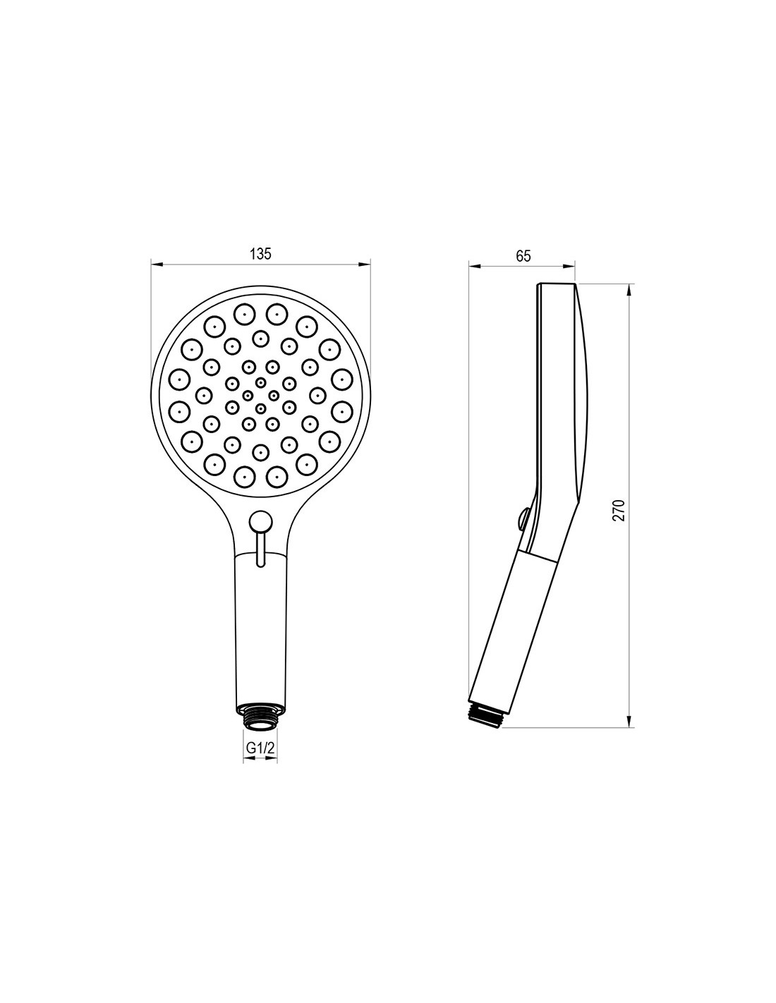 Rankinis dušas su 3 vandens srovės funkcijomis. Spalva matinė balta.