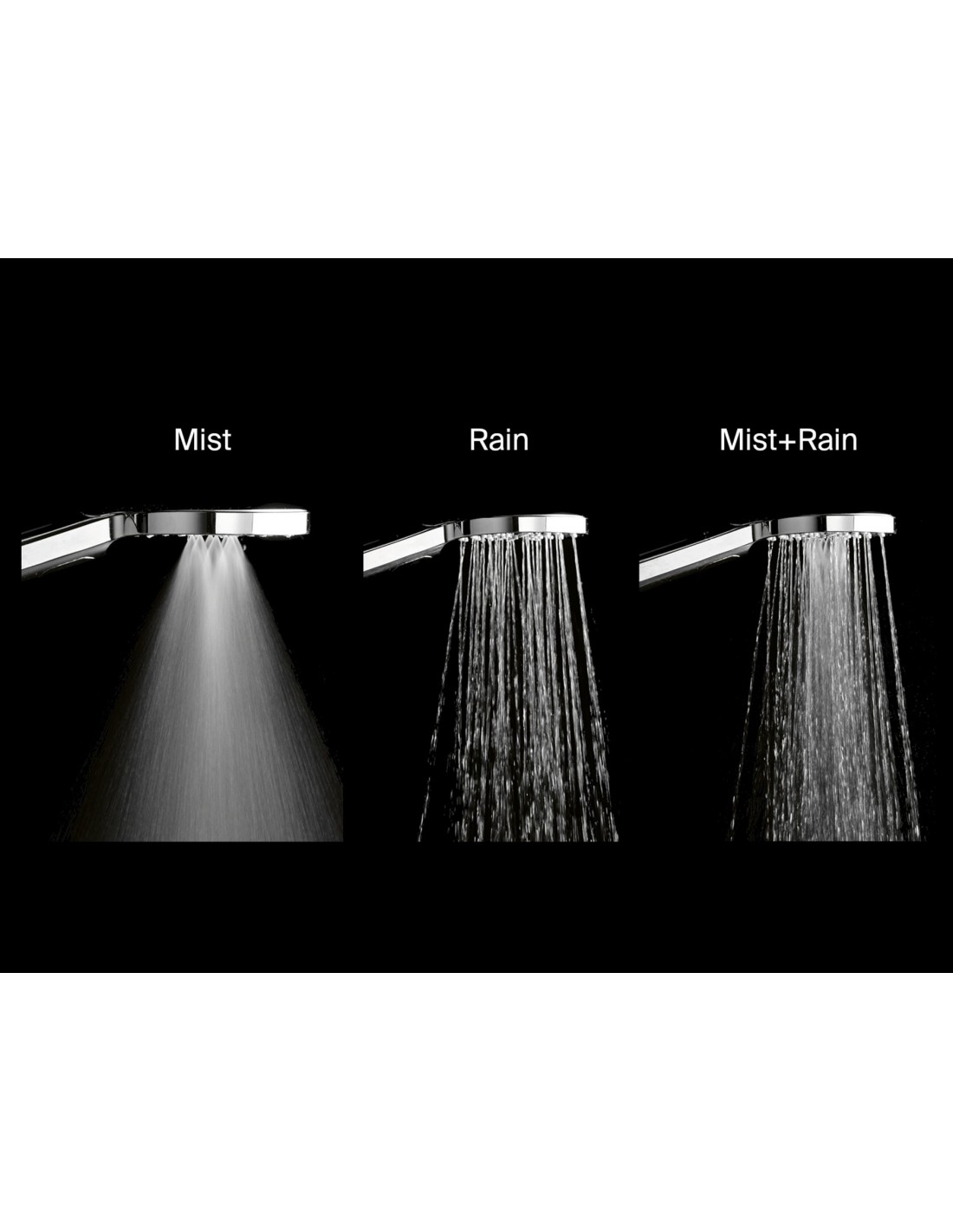 Dušo galvutė turi 3 srovės funkcijas. Mist (rūko) funkcija sukuria smulkius raminančius vandens lašelius. Rain (lietaus) funkcija maloniai masažuoja. Trečioje funkcijoje Mist+Rain rasite abiejų funkcijų derinį.