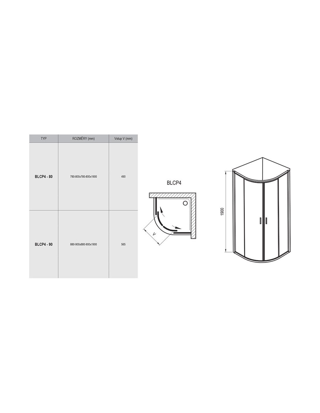 Dušo kabina Blix BLCP4 R550, Blizgus, RAVAK
