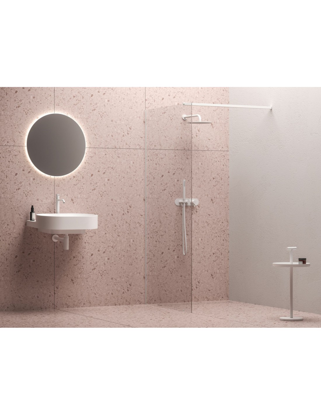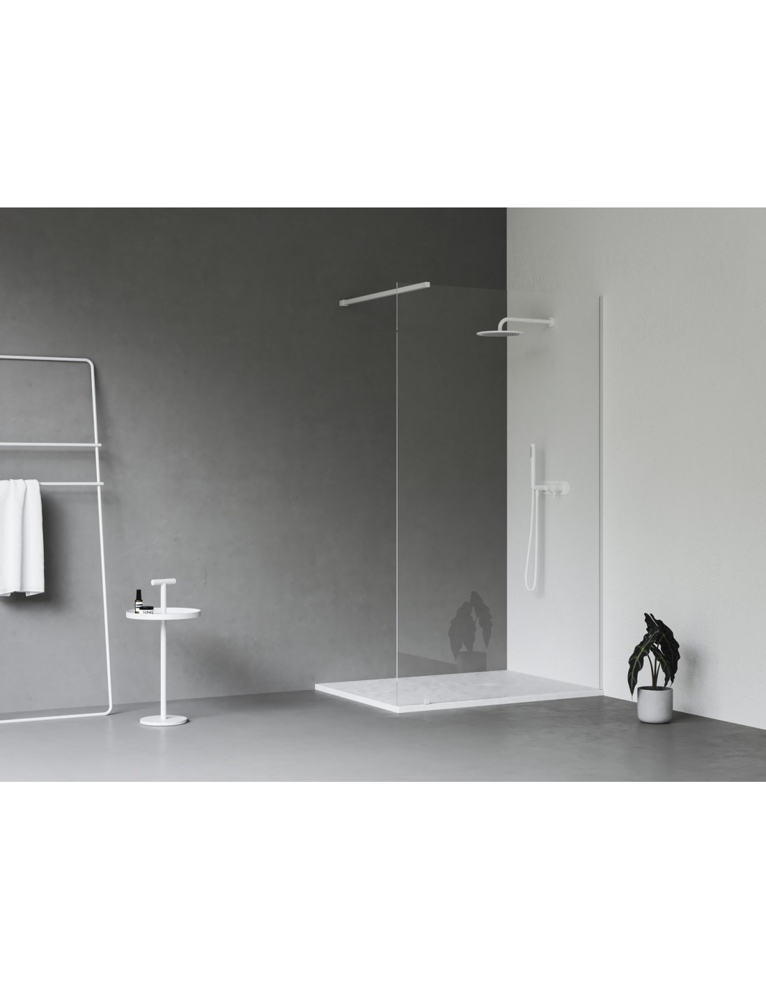 Dušo kabina Walk-In Wall pagaminta iš 8 mm storio grūdinto saugaus stiklo. Gaminio stabilumą užtikrina metalinis laikiklis, nustatantis atviro įėjimo plotį.