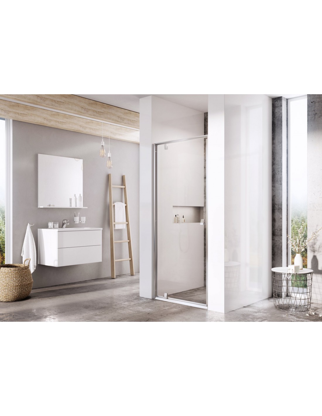 Gaminį sudaro viena lygi pasukama dalis - durys. Pasukę gaminį 180°, gausite kairįjį/dešinįjį įėjimo variantą. Įrengiama vonios kambario kampe, išklijuotame plytelėmis (idealiai tinka nišoms su apdaila arba kombinacijai su stacionaria sienele PPS) ant Ravak Aneta, Angela, Perseus, Perseus Pro, Perseus Pro Flat, Perseus Pro Chrome, Gigant Pro, Gigant Pro Flat, Gigant Pro Chrome padėklų arba tiesiai ant grindų su įmontuotu nutekėjimo lataku. Dviejų stacionarių sienelių PPS kombinacija leidžia sukurti U tipo dušo kabiną. Naudojant praplėtimo profiliusBLNPS, galima koreguoti statybinės angos dydį iki 4 cm į kiekvieną pusę.