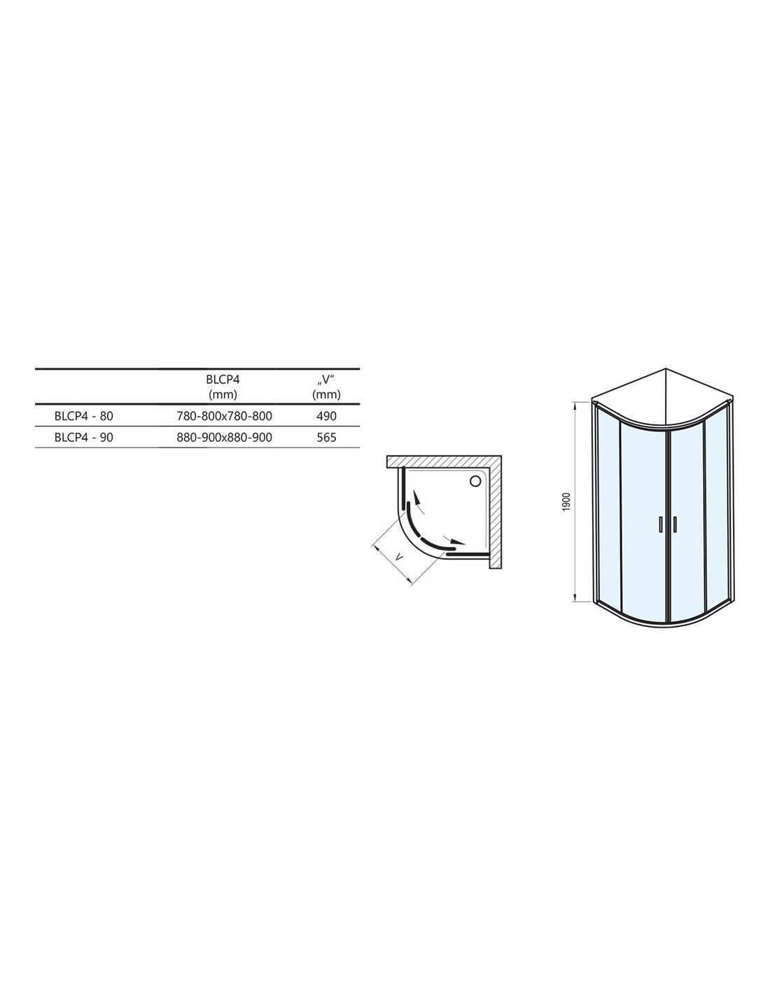 Pusapvalė dušo kabina Blix, blizgaus chromo profilliai su nepermatomo stiklo Grape užpildu, padengtu Ravak AntiCalc® apsauginiu sluoksniu. Stumdomoji atidarymo sistema.