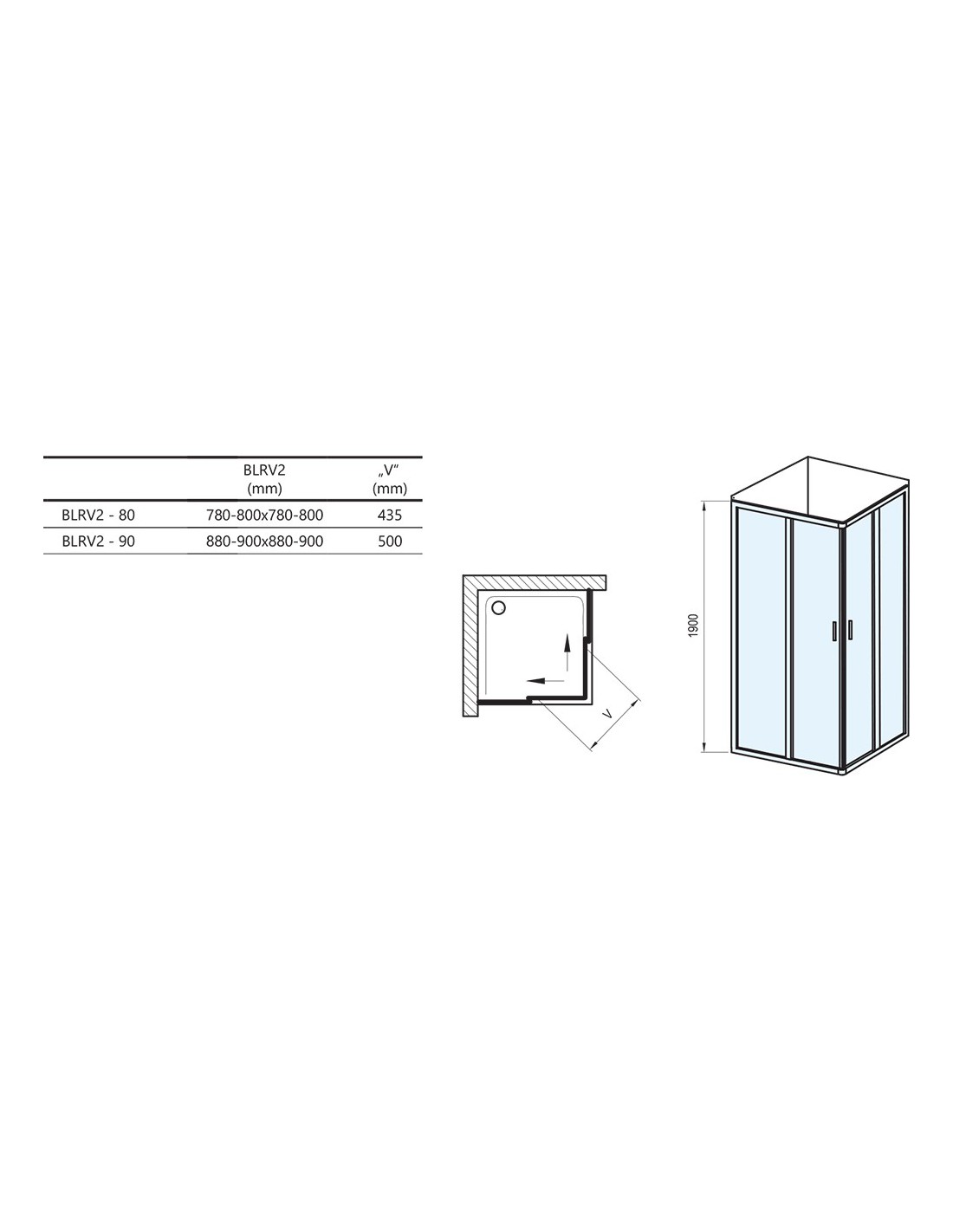 Dušo kabina Blix BLRV2, Satinas, RAVAK