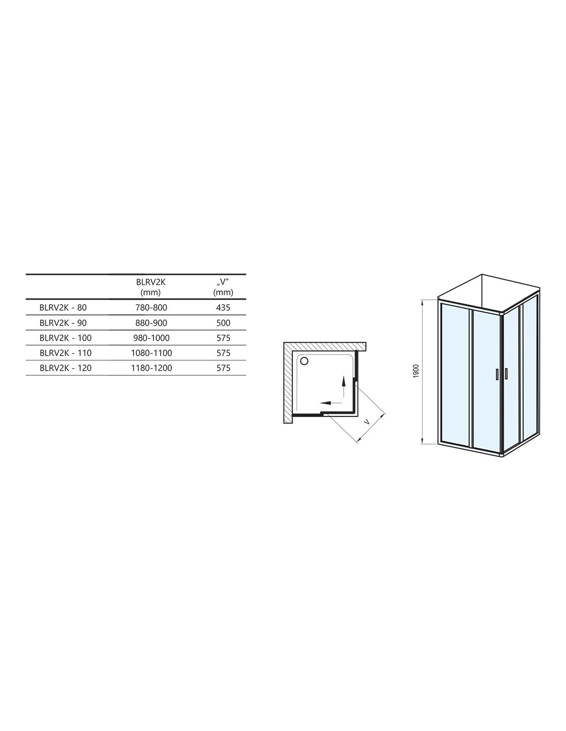Dušo kabina Blix BLRV2K+BLRV2K, Balta, RAVAK