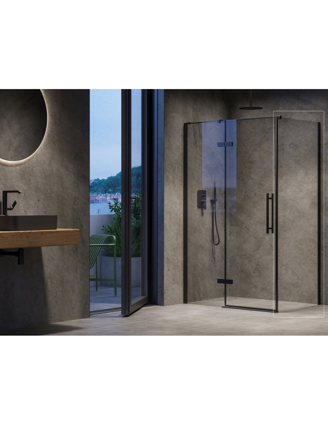 Dušo kabinos sienelė Cool! Juodos spalvos su skaidriu stiklu, padengtu Ravak AntiCalc® apsauginiu sluoksniu. Gali būti verčiamos ir montuojamos tiek kairėje, tiek dešinėje.