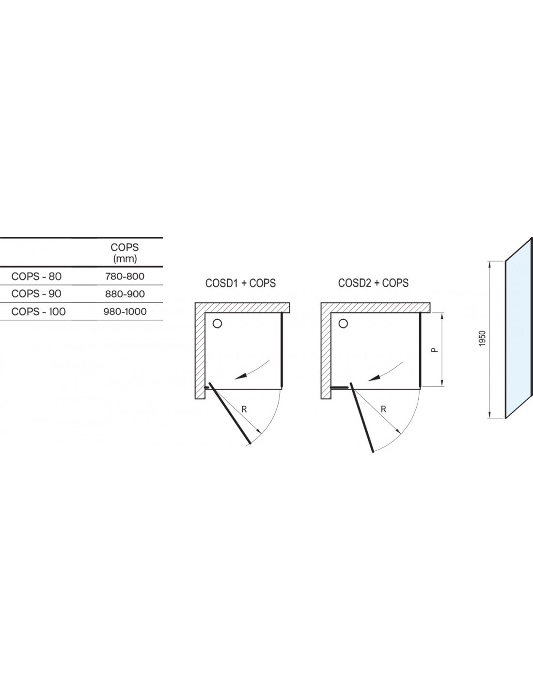 Pasukus gaminį 180°, gausite kairįjį arba dešinįjį variantą. Montuojama į plytelėmis išklotą vonios kambario kampą kartu su COSD1 arba COSD2 gaminiu ant Ravak Angela, Perseus Pro, Perseus Pro Flat, Perseus Pro Chrome, Gigant Pro, Gigant Pro Flat, Gigant Pro Chrome padėklų arba tiesiai ant grindų su įrengtu nutekamuoju lataku.