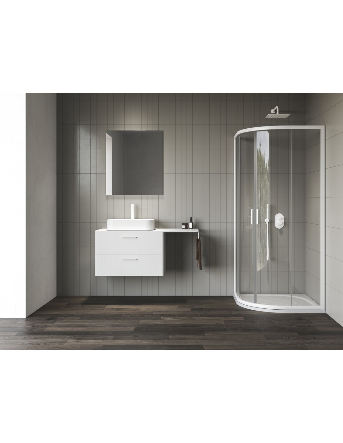Pusapvalė dušo kabina Blix II, baltos matinės spalvos profillis su skaidraus stiklo užpildu, padengtu Ravak AntiCalc® apsauginiu sluoksniu. Stumdoma atidarymo sistema.