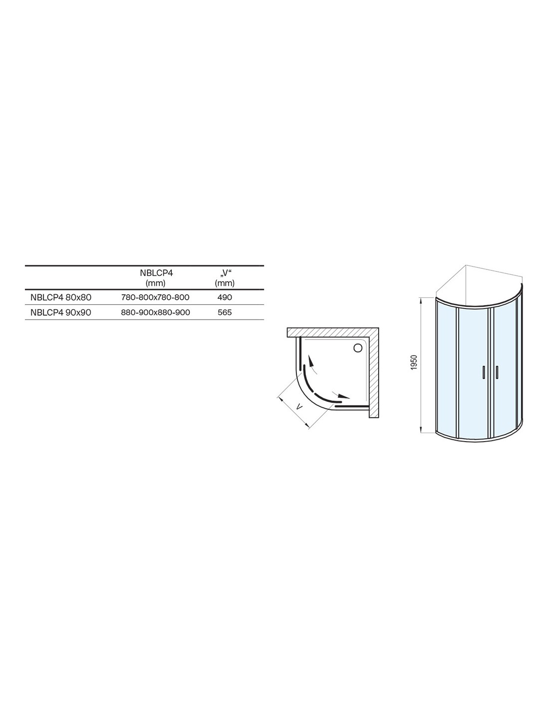 Gaminį sudaro dvi stacionarios dalys ir dvi lenktos - stumdomos durys. Įrengiama vonios kambario kampe, išklijuotame plytelėmis, ant Ravak Ravak Ronda, Elipso, Elipso Pro, Elipso Pro Flat, Elipso Pro Chrome padėklo arba tiesiai ant grindų su įrengtu įmontuotu nutekėjimo lataku.