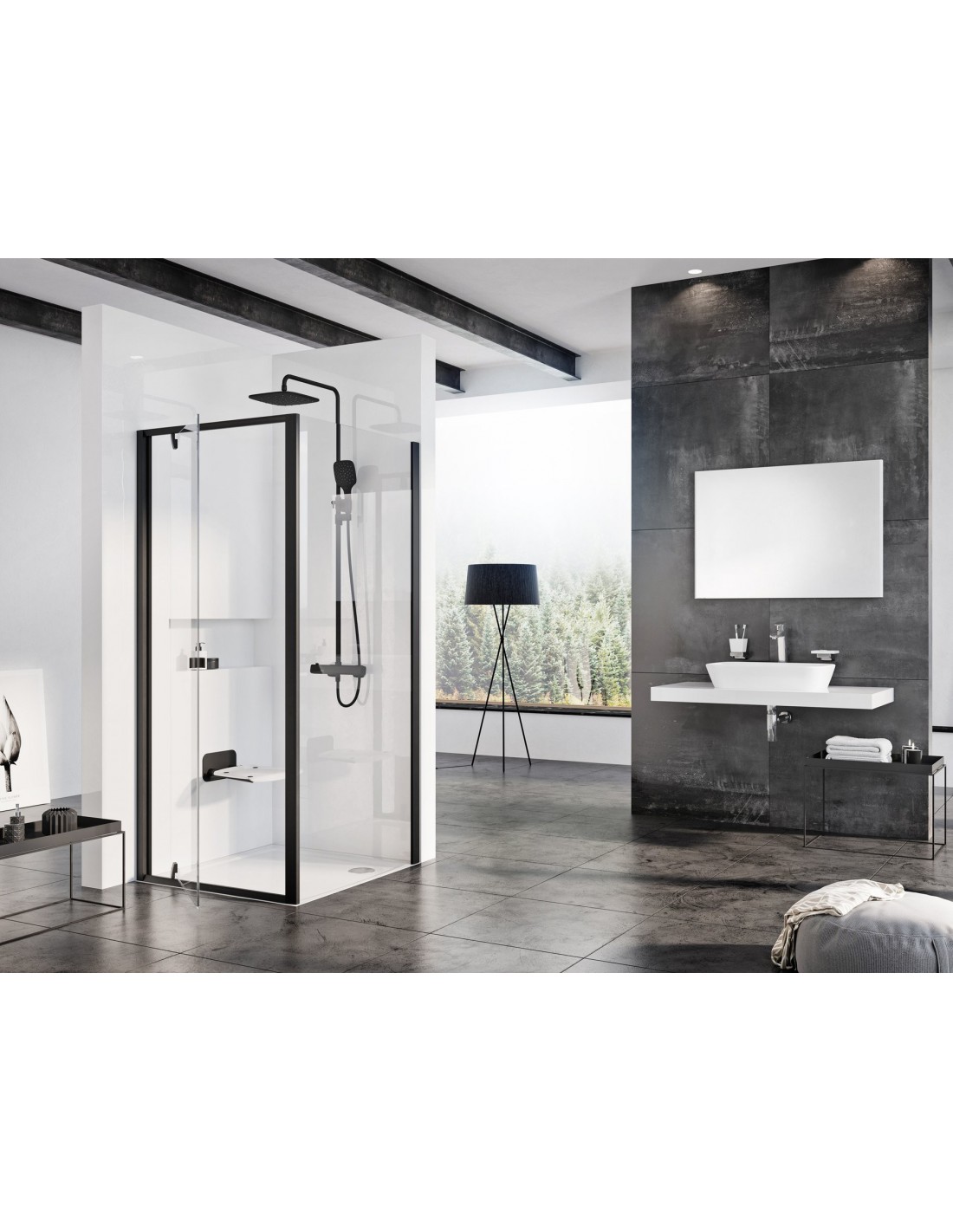 - rekomenduojamas minimalus dušo erdvės dydis: 90 x 90 cm