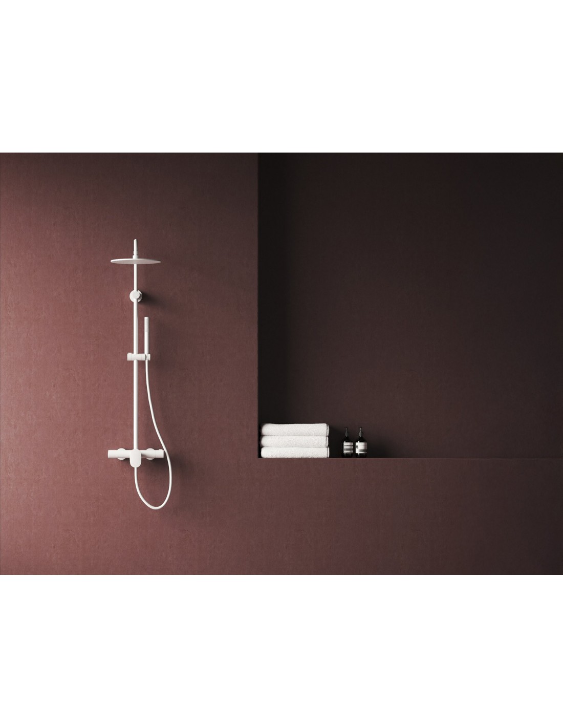 Dušo stovas Spring su dušo komplektu. Reguliuojamas stovo aukštis. Matinės baltos spalvos.