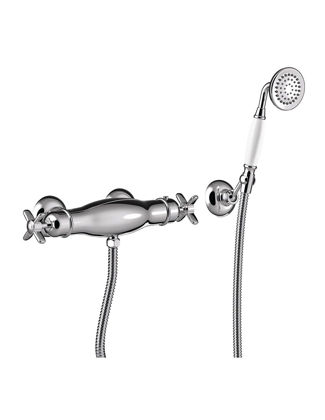 Termostatinis dušo maišytuvas su žalvariniu rankiniu dušu. Purkštukai yra su apsauga nuo kalkių, todėl juos itin paprasta ir patogu valyti. Termostatinė kasetė užtikrina nuolatinę vandens srovę su pastovia temperatūra, nepaisant vandens spaudimo ar temperatūros pokyčių. Purkštukai yra su apsauga nuo kalkių, todėl juos itin paprasta ir patogu valyti. Maišytuvo paviršius išlaiko neaukštą temperatūrą, taip apsaugant nuo nudegimo liečiant. Gaminys turi BELGAQUA sertifikatą.
