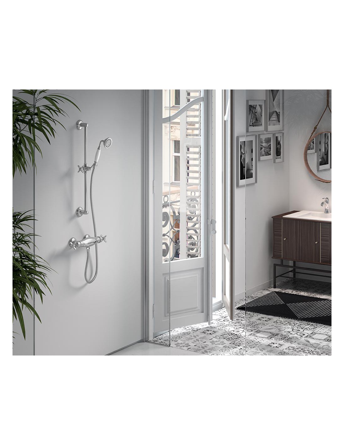 Maišytuvas termostatinis dušo Tres Clasic, su rankiniu dušu, TRES