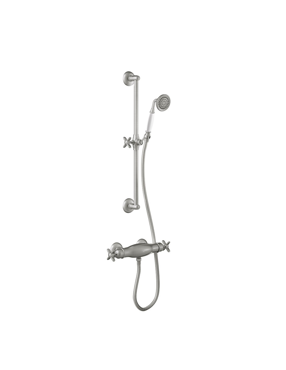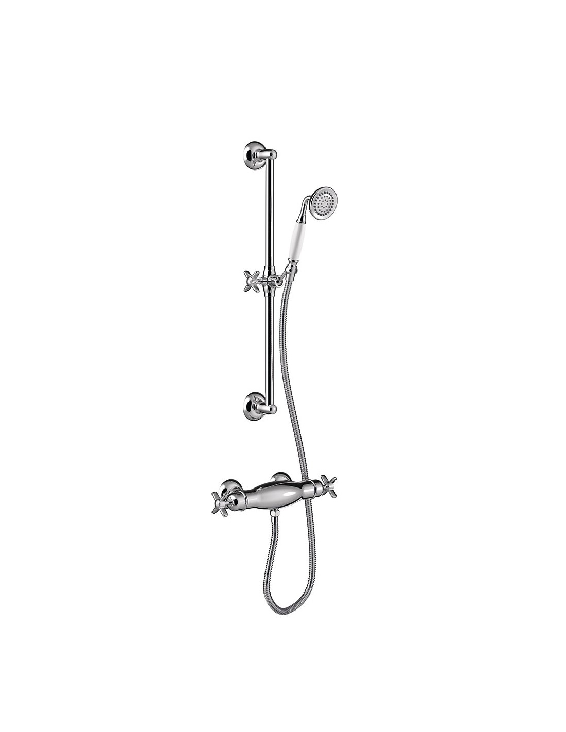 Termostatinis dušo maišytuvas su žalvariniu rankiniu dušu ir reguliuojamo aukščio laikikliu. Purkštukai yra su apsauga nuo kalkių, todėl juos itin paprasta ir patogu valyti. Termostatinė kasetė užtikrina nuolatinę vandens srovę su pastovia temperatūra, nepaisant vandens spaudimo ar temperatūros pokyčių. Purkštukai yra su apsauga nuo kalkių, todėl juos itin paprasta ir patogu valyti. Maišytuvo paviršius išlaiko neaukštą temperatūrą, taip apsaugant nuo nudegimo liečiant. Gaminys turi BELGAQUA sertifikatą.