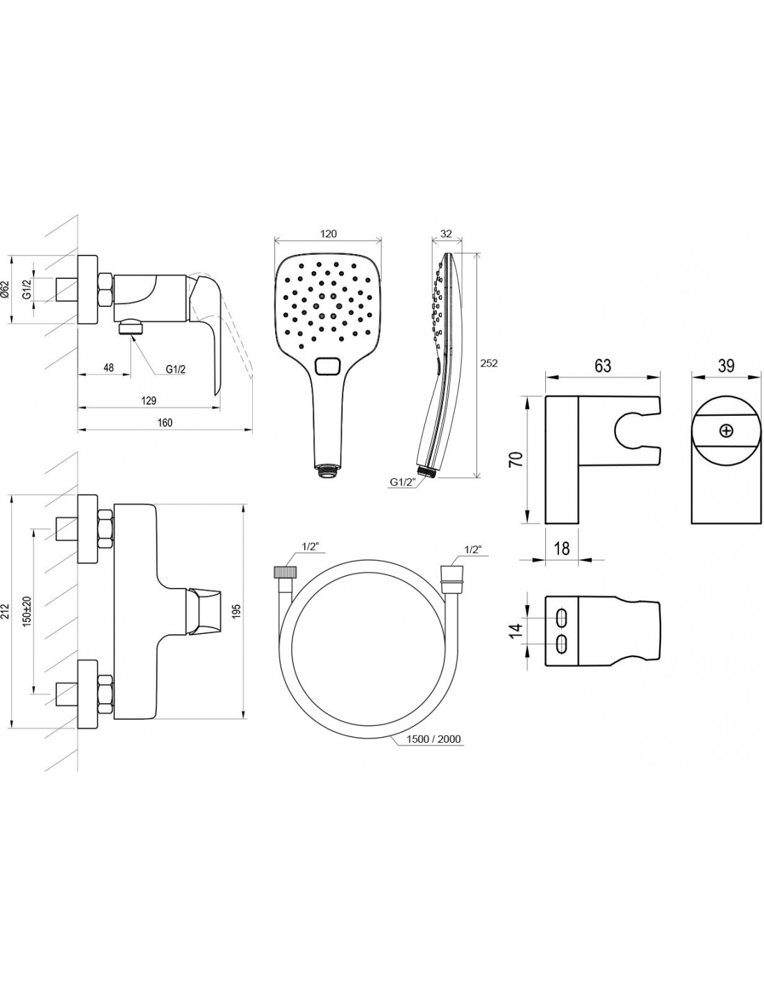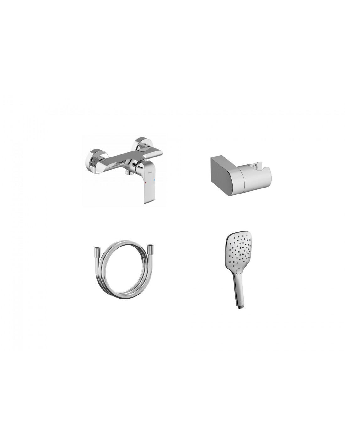 Sieninis dušo maišytuvas Flat su dušo komplektu. Chromo apdaila.