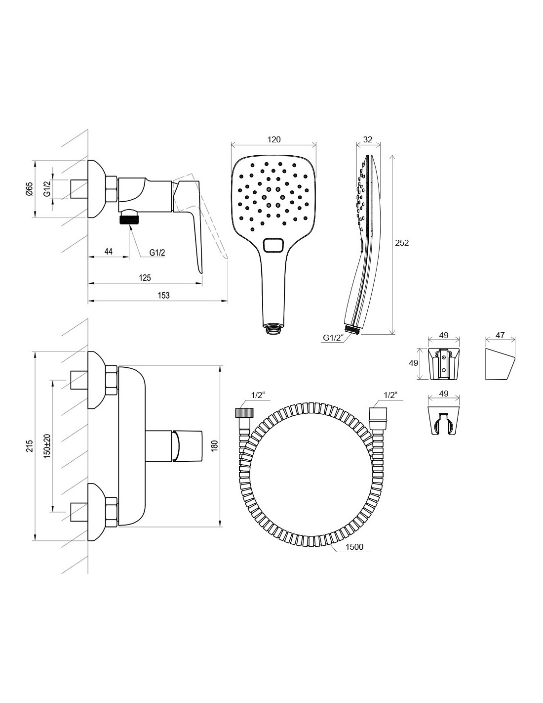 Dušo komplektas Į komplektą įeina: