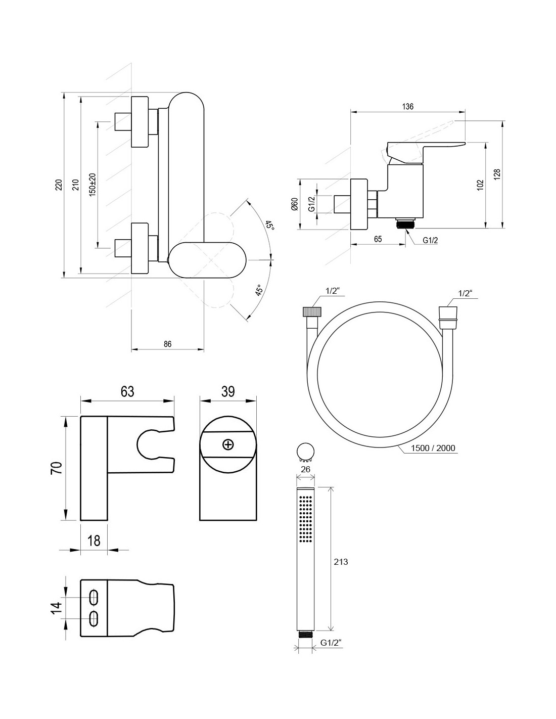 Dušo komplektą sudaro:
