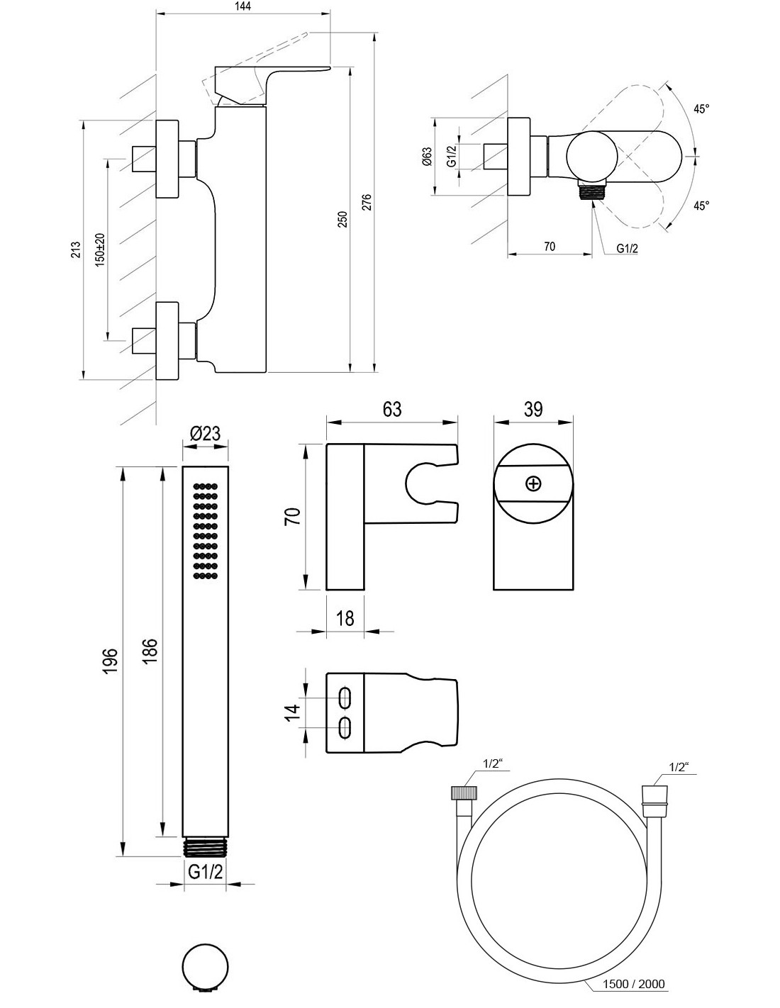 • Tarpašiniai maišytuvo matmenys: 150 mm