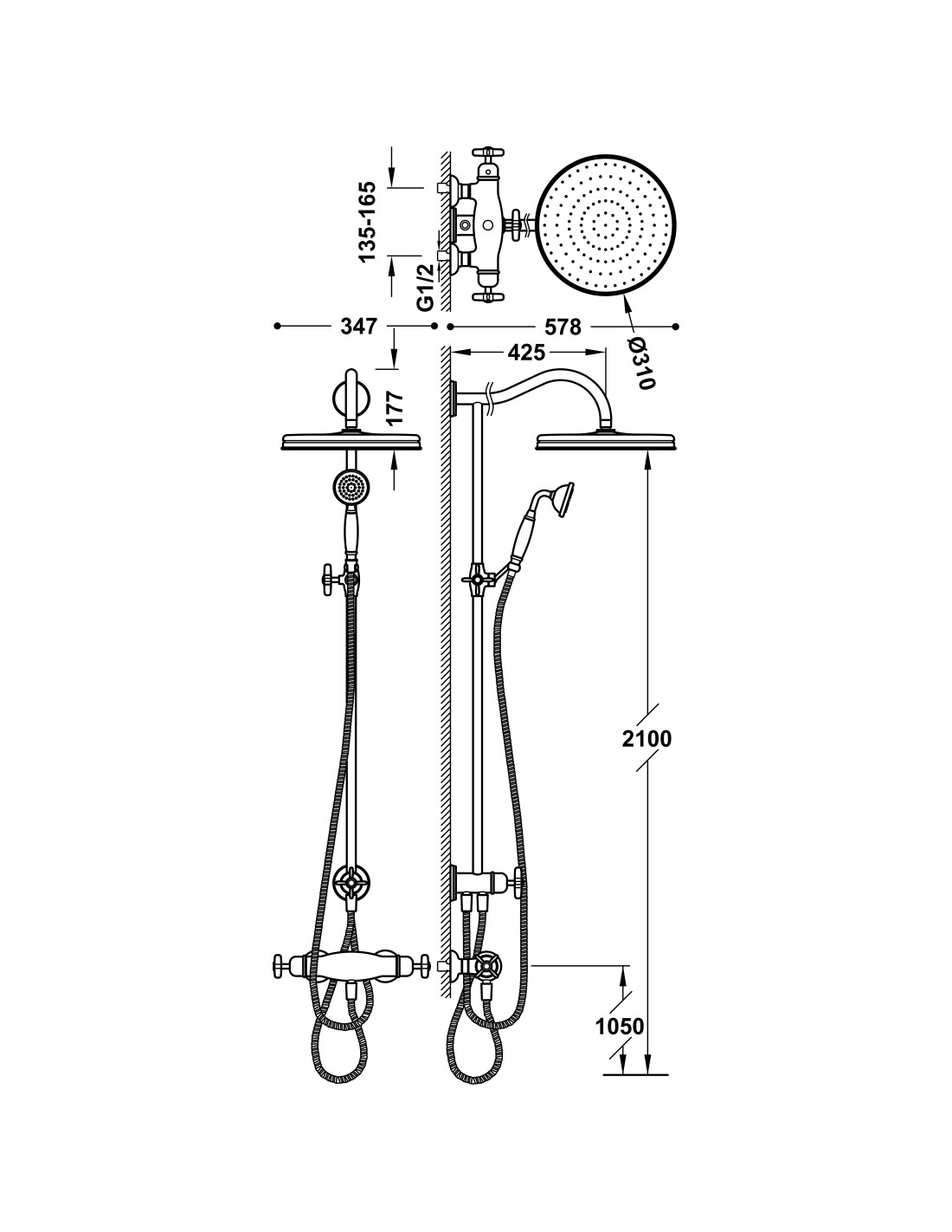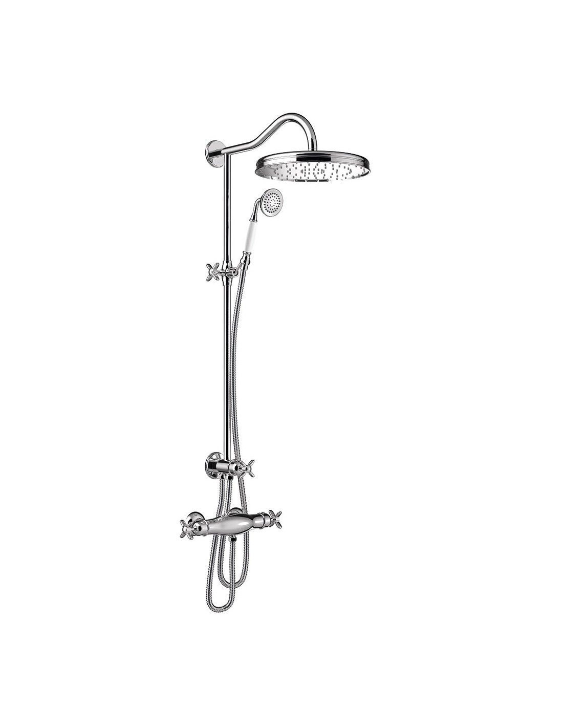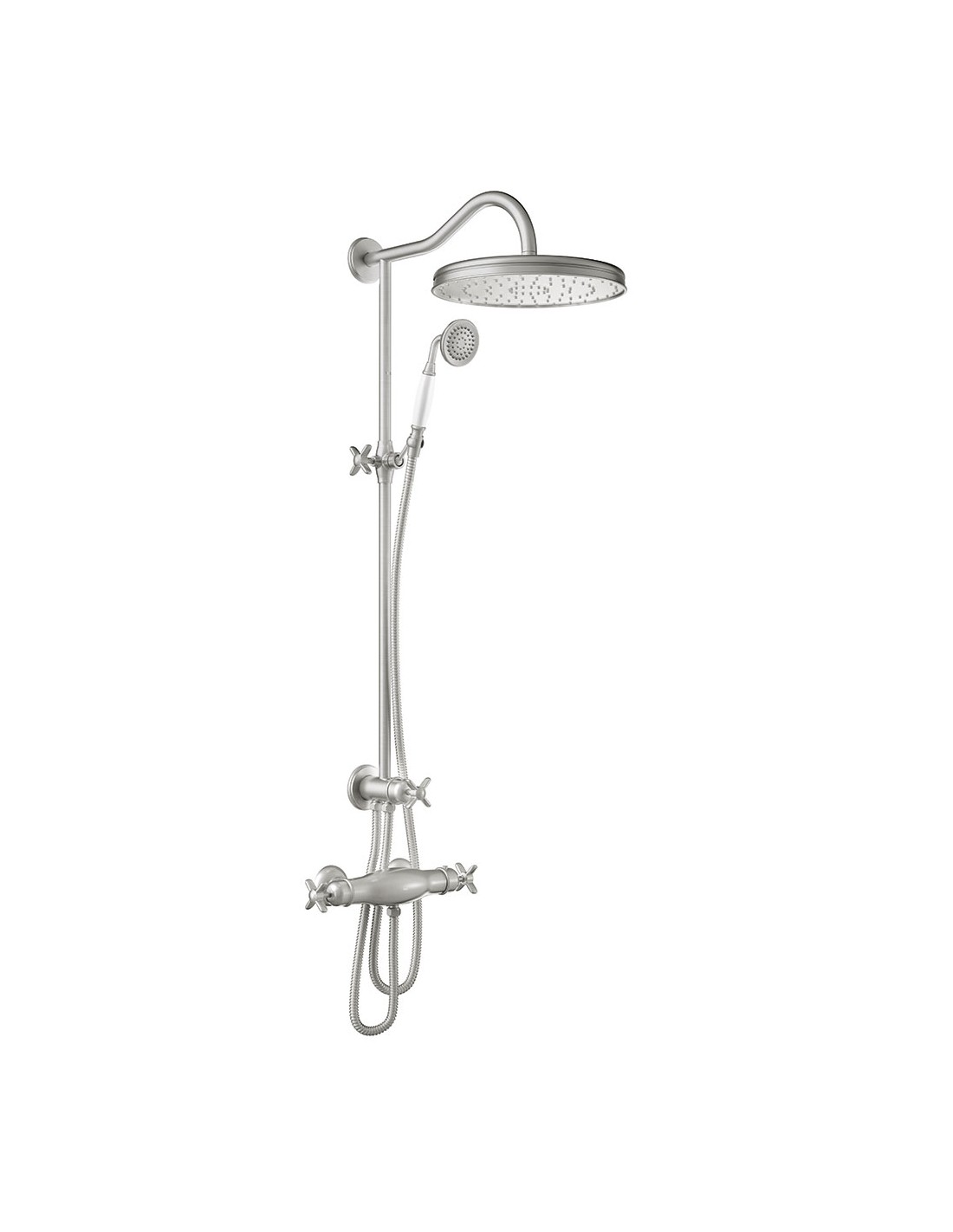 Termostatinė dušo sistema su 78 mm skersmens žalvariniu rankiniu dušu ir stacionaria 310 mm žalvarine dušo galva. Reguliuojamo aukščio rankinio dušo laikiklis. Purkštukai yra su apsauga nuo kalkių, todėl juos itin paprasta ir patogu valyti. Termostatinė kasetė užtikrina nuolatinę vandens srovę su pastovia temperatūra, nepaisant vandens spaudimo ar temperatūros pokyčių. Purkštukai yra su apsauga nuo kalkių, todėl juos itin paprasta ir patogu valyti. Maišytuvo paviršius išlaiko neaukštą temperatūrą, taip apsaugant nuo nudegimo liečiant. Gaminys turi BELGAQUA sertifikatą.
