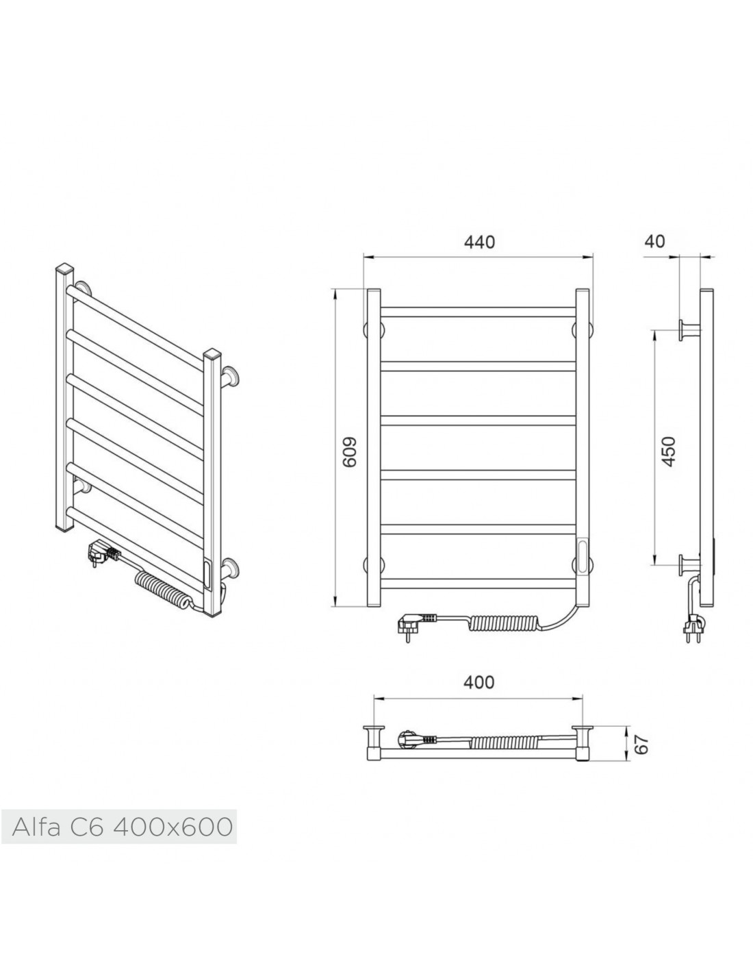 Elektrinis rankšluosčių džiovintuvas ALFA 400x609 juodos sp., Laris
