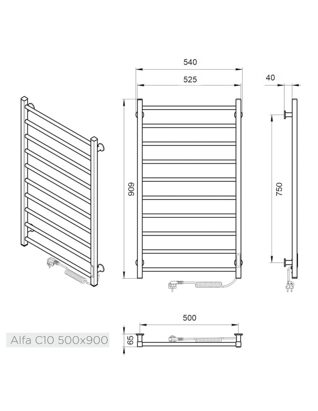 Elektrinis rankšluosčių džiovintuvas ALFA 500x900 juodos sp., Laris
