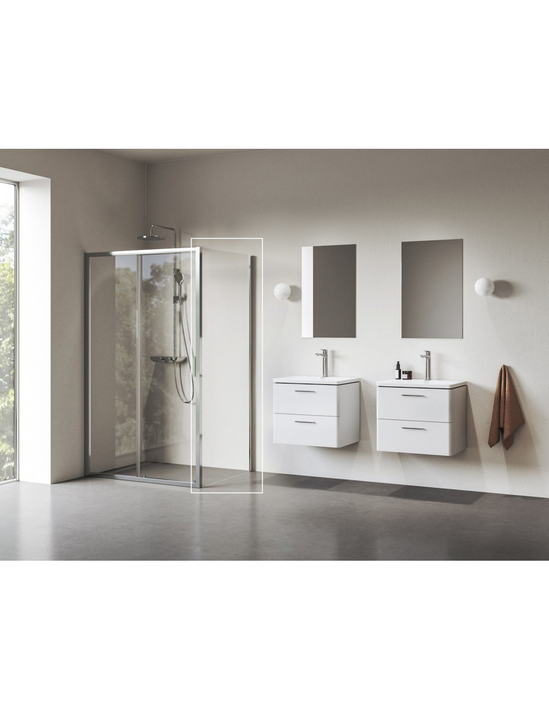 Dušo kabinos sienelė Blix II, blizgus profilis su skaidraus stiklo užpildu, padengtu apsauginiu sluoksniu Ravak AntiCalc®. Sienelė gali būti naudojama tiek kairėje, tiek dešinėje pusėje.