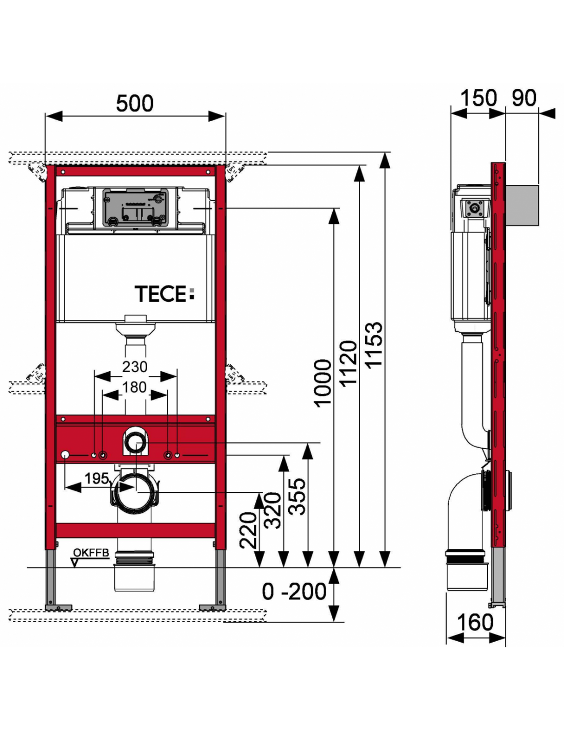 Jeigu naudojama mažesnio tvirtinimo paviršiaus unitazo keramika (t. y. atstumas nuo tvirtinimo varžto vidurio iki apatinio tvirtinimo paviršiaus krašto yra ne didesnis nei 18 cm), pvz., V & B Memento, Subway 2.0, apatinėje konstrukcijos ertmėje būtina sumontuoti metalinių atramų komplektą 9041029.