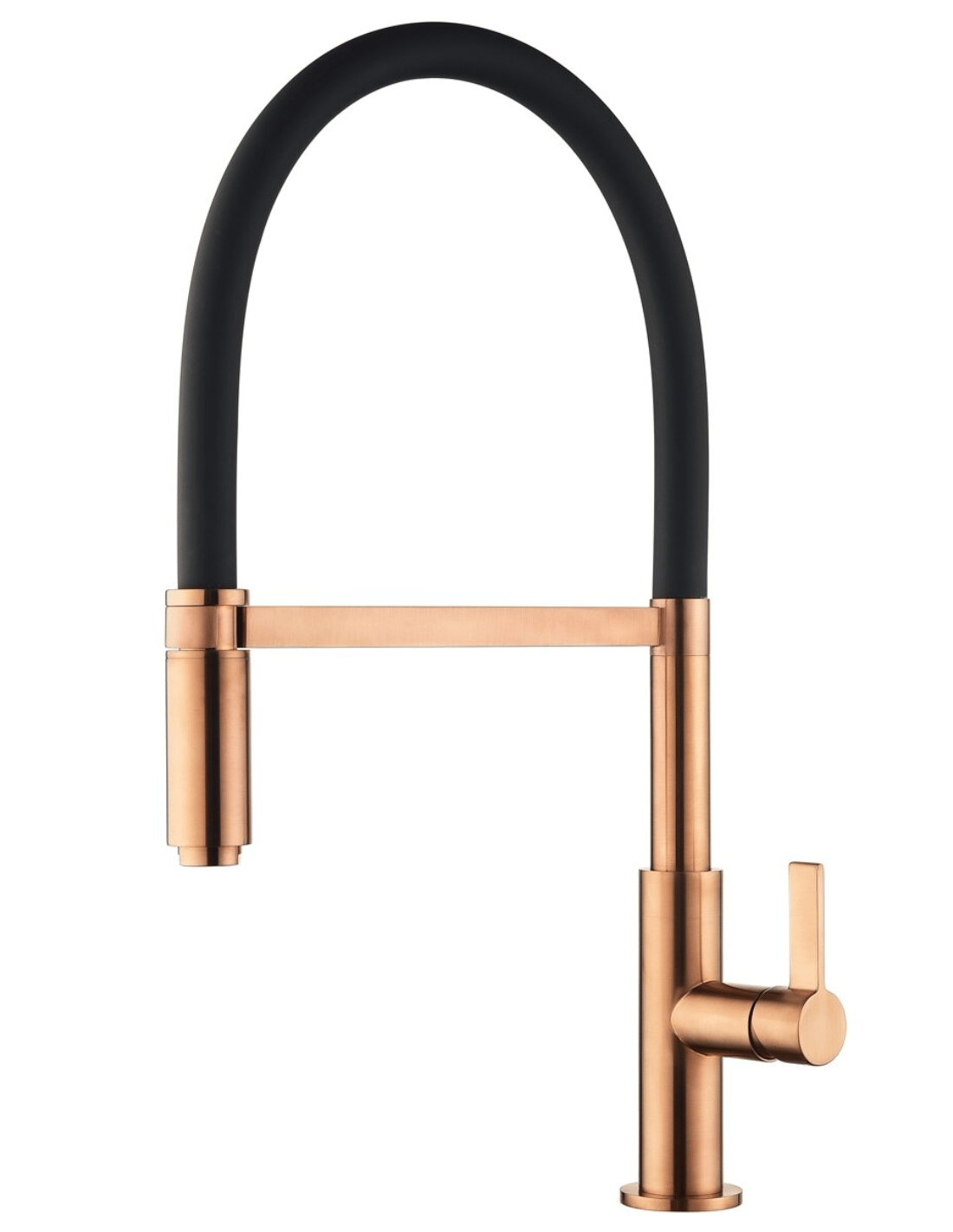 Aukštas, ištraukiamas virtuvės maišytuvas su lanksčia, juoda žarna