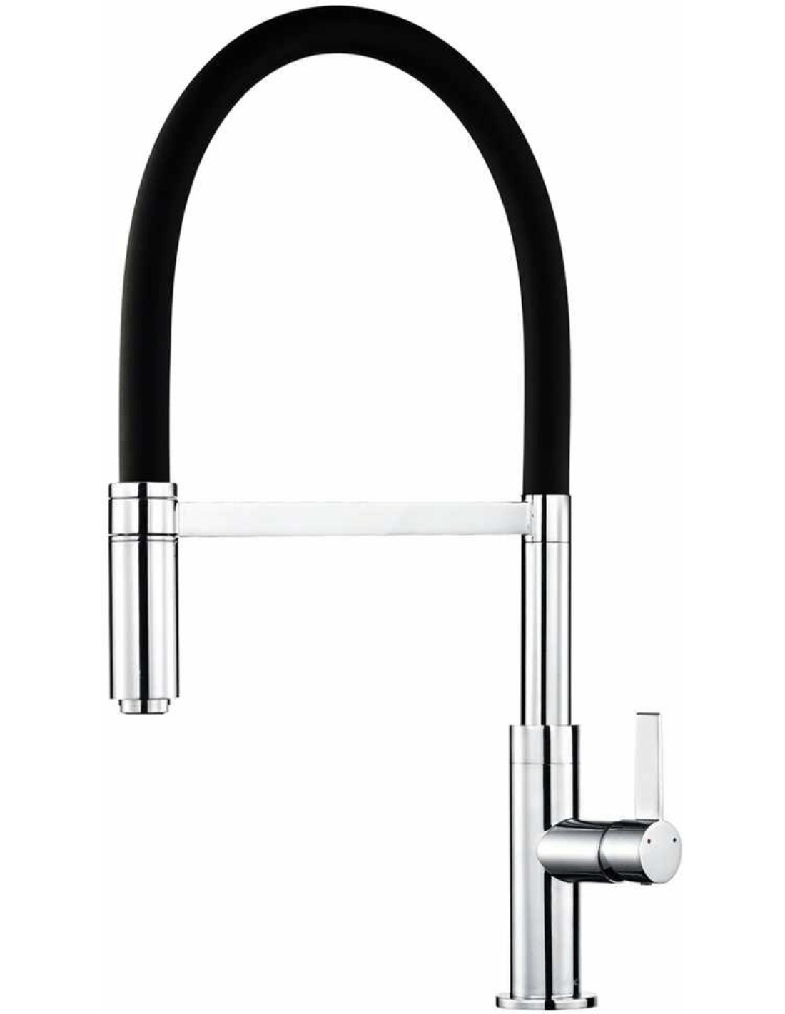 Aukštas ištraukiamas virtuvės maišytuvas su silikonine lanksčia juoda žarna