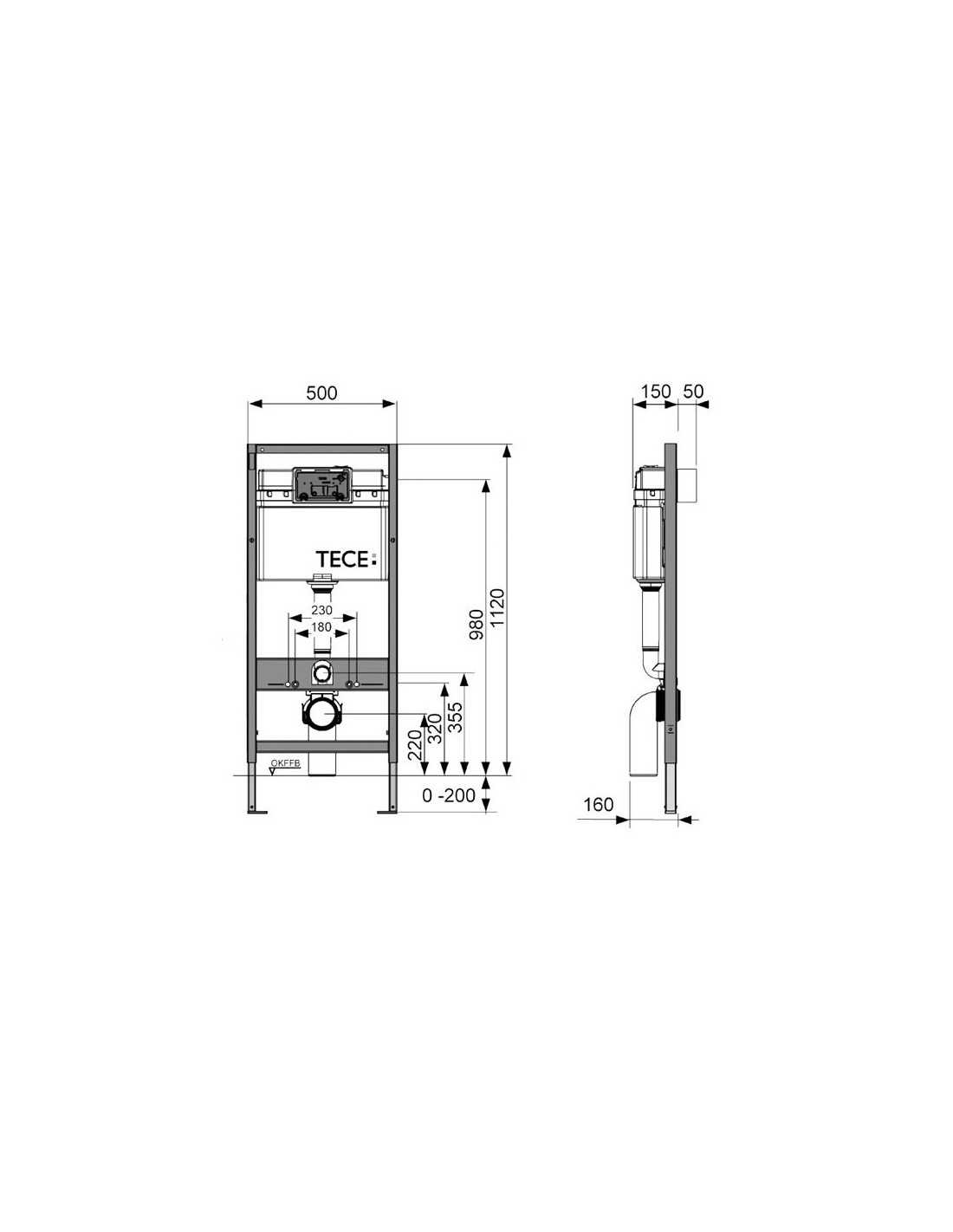TECEbase WC modulis su tvirtinimais valdymas iš priekio, montavimo aukštis 1120mm