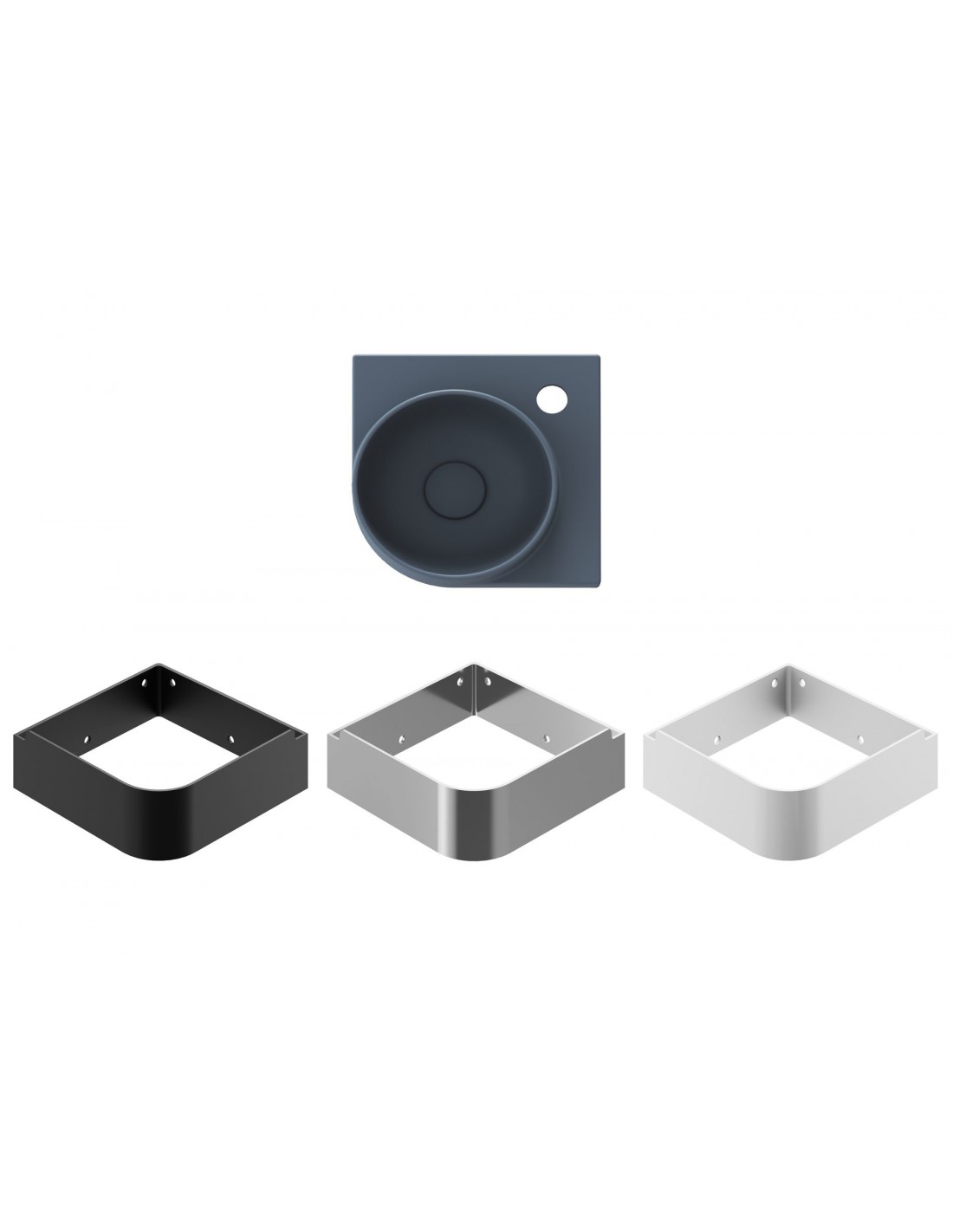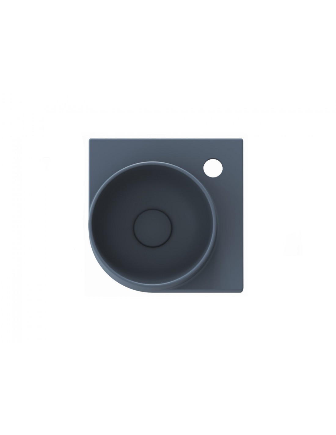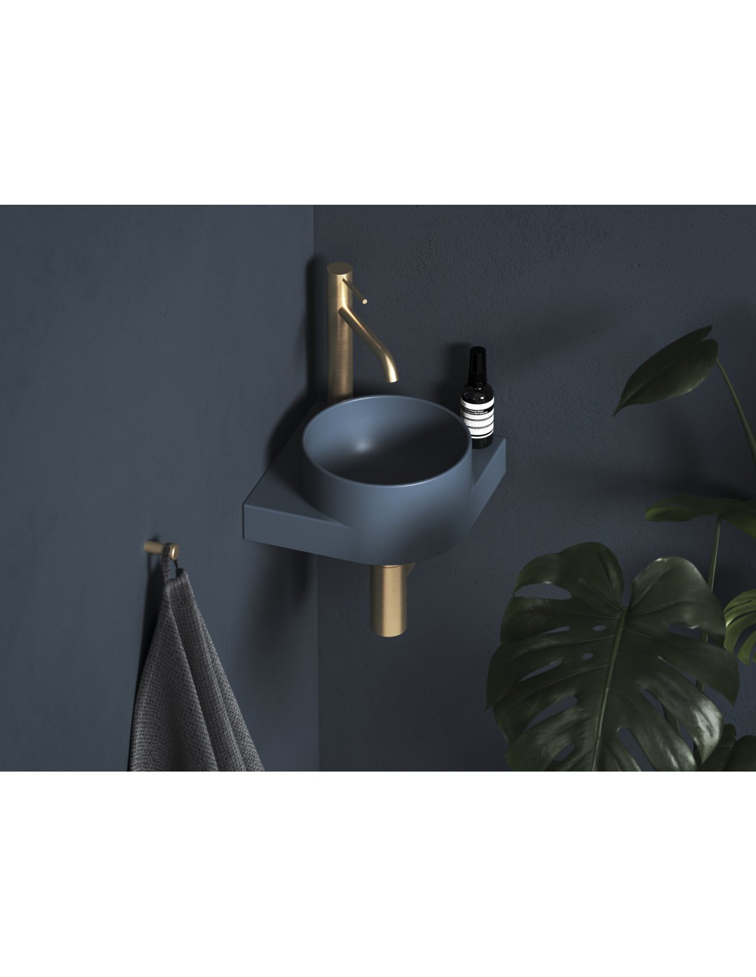 Keraminis kampinis praustuvas Yard, skirtas montuoti su Yard laikikliu, su skyle maišytuvui, be perpildymo angos. Deepsea Blue spalvos.