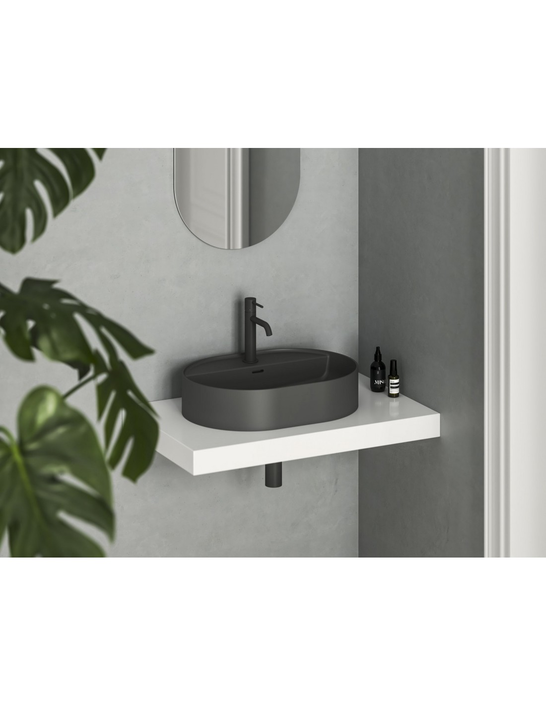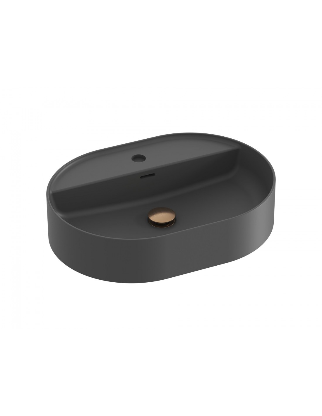 Keraminis praustuvas Ceramic Slim O Shelf, skirtas montuoti ant stalviršio arba spintelės, su anga perpildymui. Antracitas.