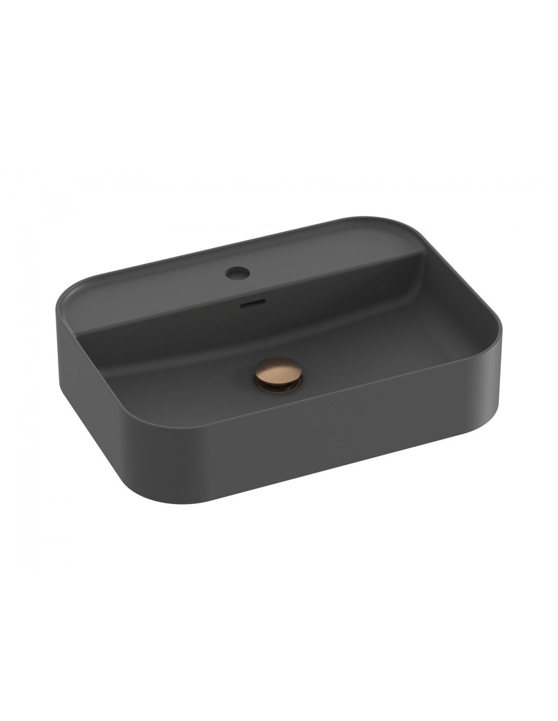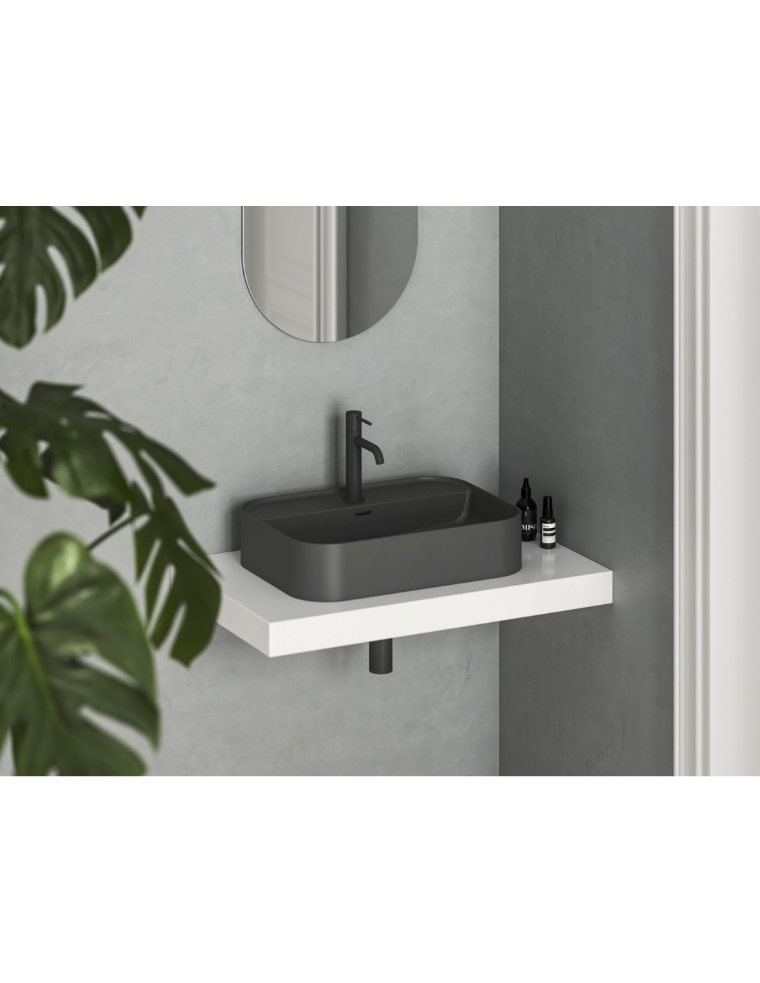Keraminis praustuvas Ceramic Slim R Shelf, skirtas montuoti ant stalviršio arba spintelės, su anga perpildymui. Antracitas.
