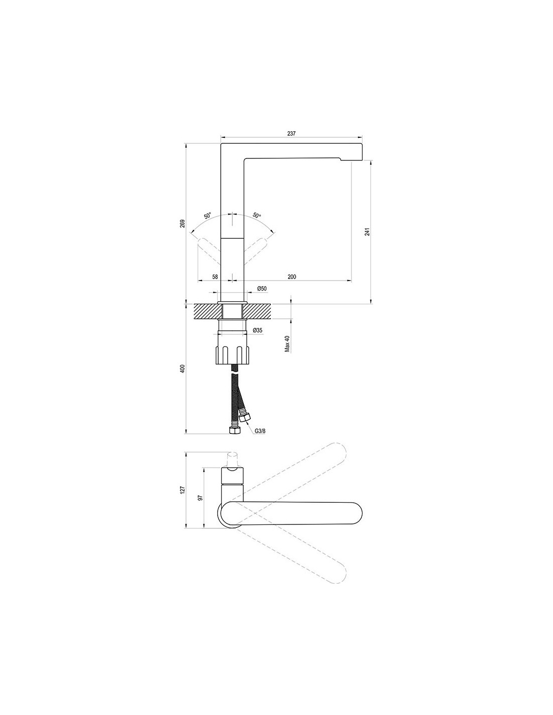 - Jungiamosios žarnos: lankstusis 450 mm, skersmuo G3/8