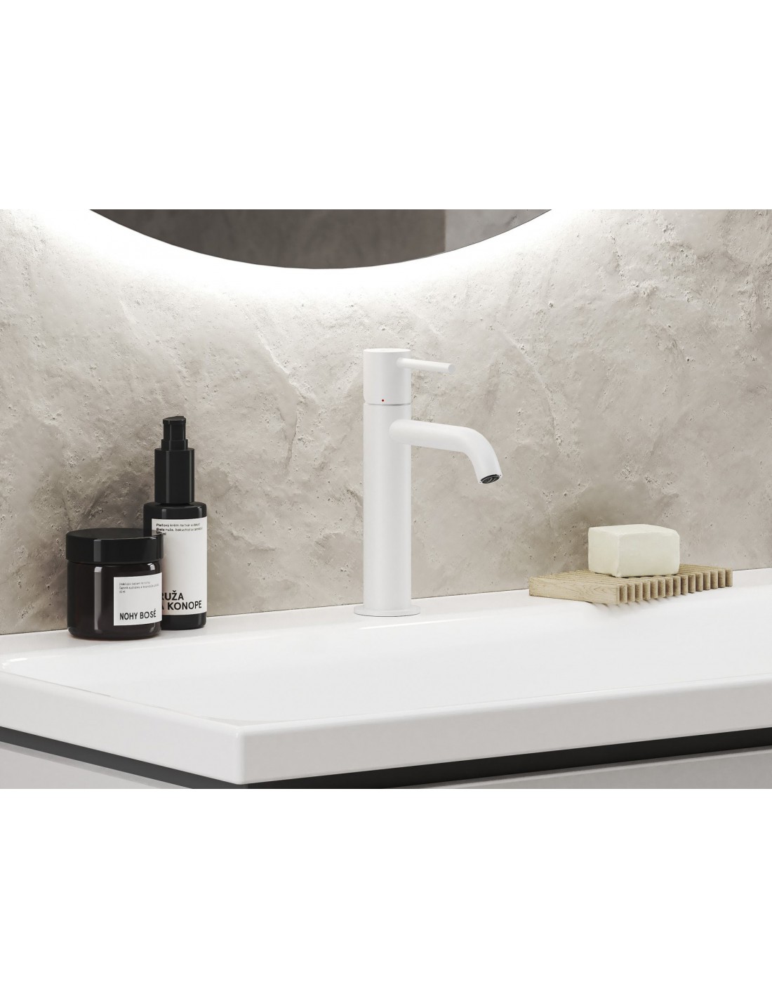 Praustuvo maišytuva Espirit be dugno vožtuvo. BeCool funkcija taupanti karšto vandens sanaudas. Integruotas aeratorius su EcoFlow funkcija. White Velvet.