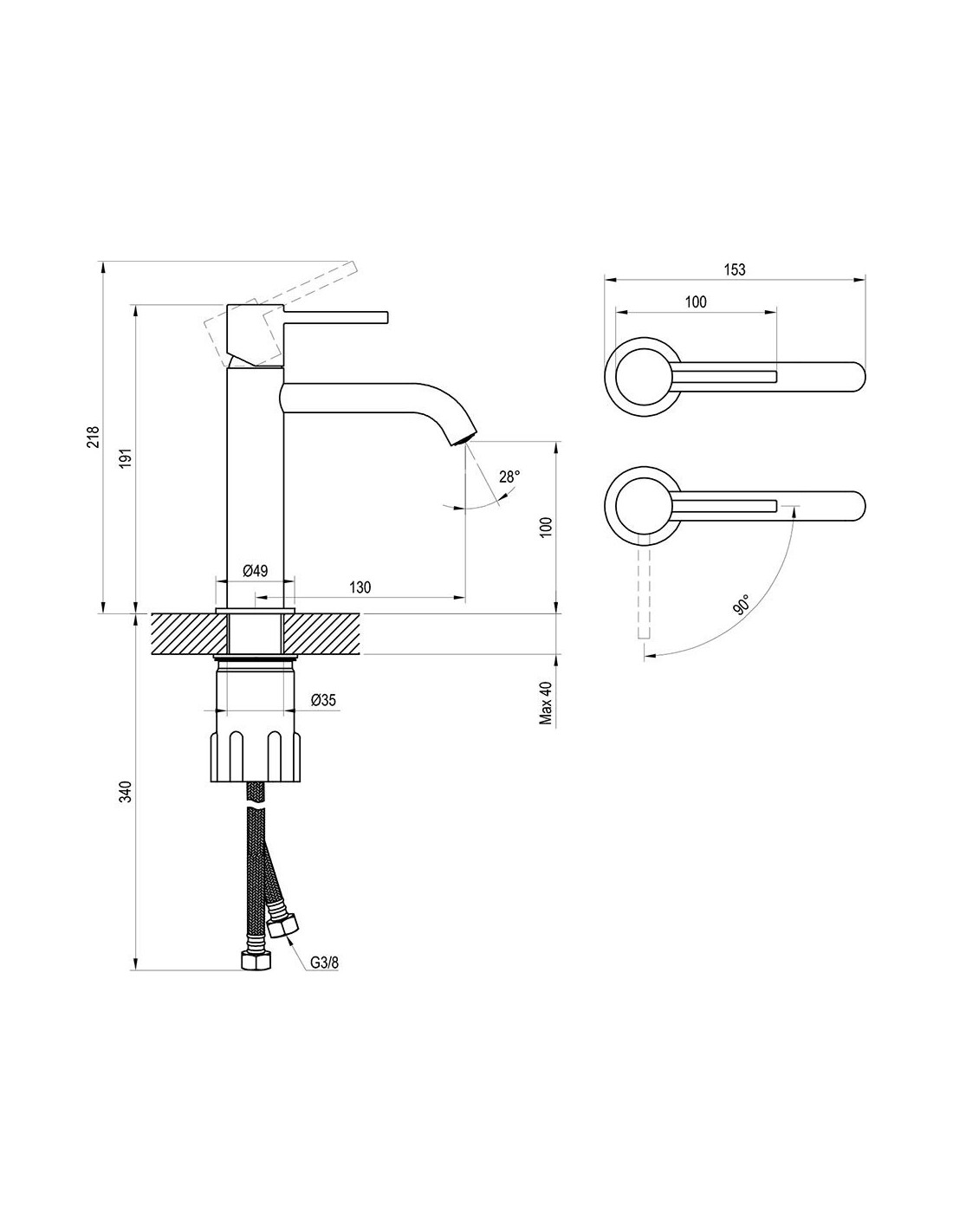- prijungimo žarnelės: lanksčios 450 mm, skersmuo DN6, G3/8