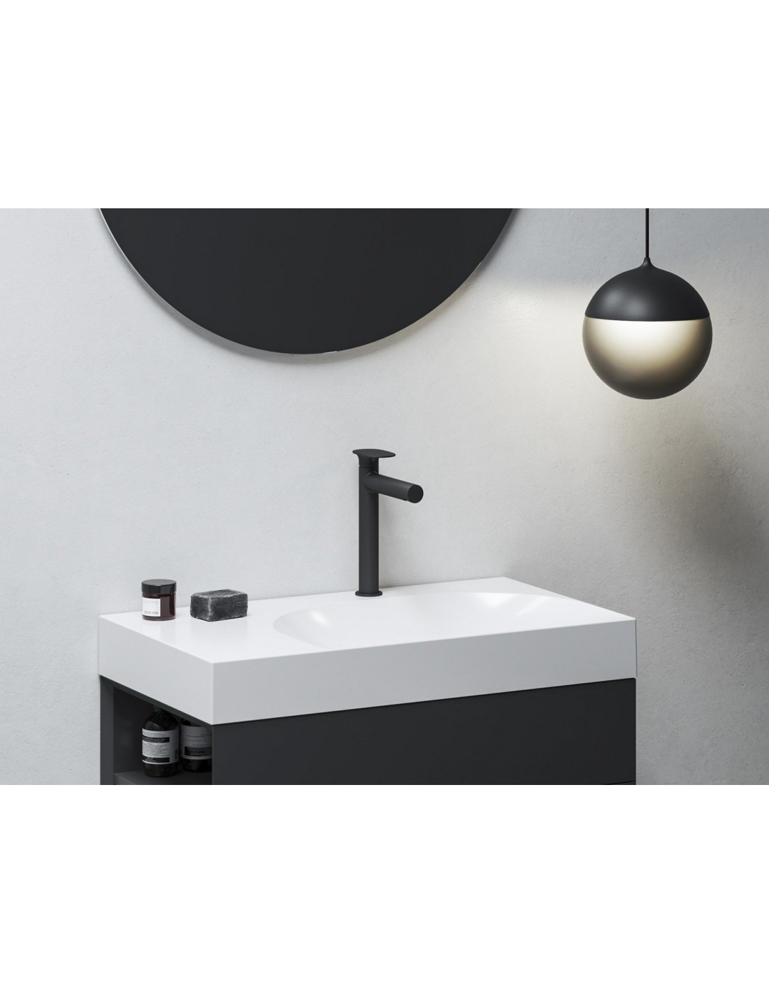 Praustuvo maišytuvas Spring, be dugno vožtuvo. Matinės juodos spalvos. Patogus aeratorius su EcoFlow funkcija.
