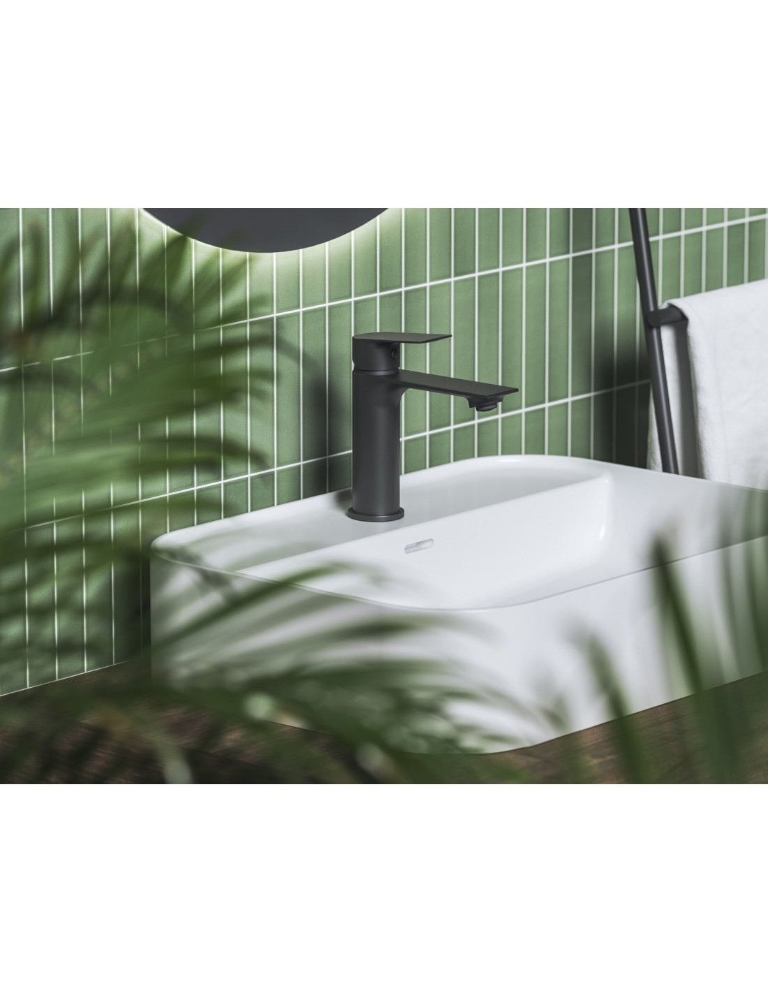 Pastatomas praustuvo maišytuvas Plan, be dugno vožtuvo. Matinės juodos spalvos.