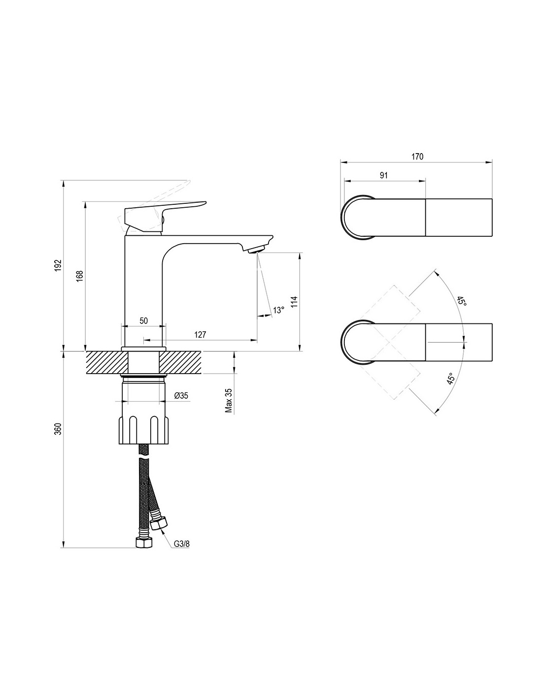 • Prijungimo žarnelės: lanksčios 450 mm, G3/8 diametras