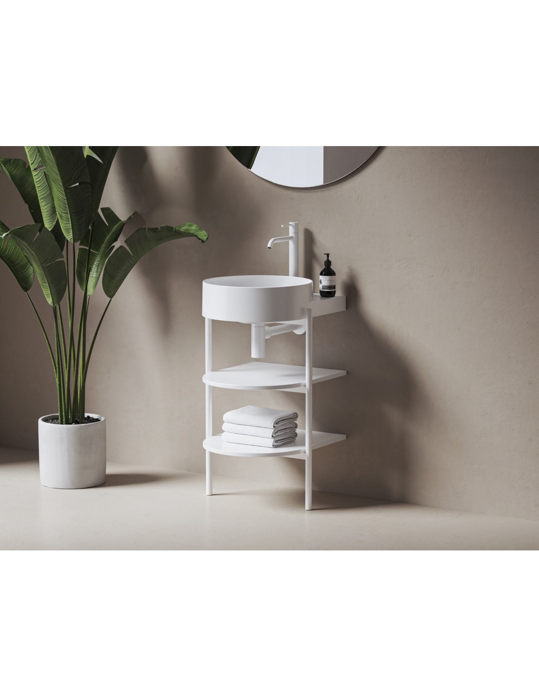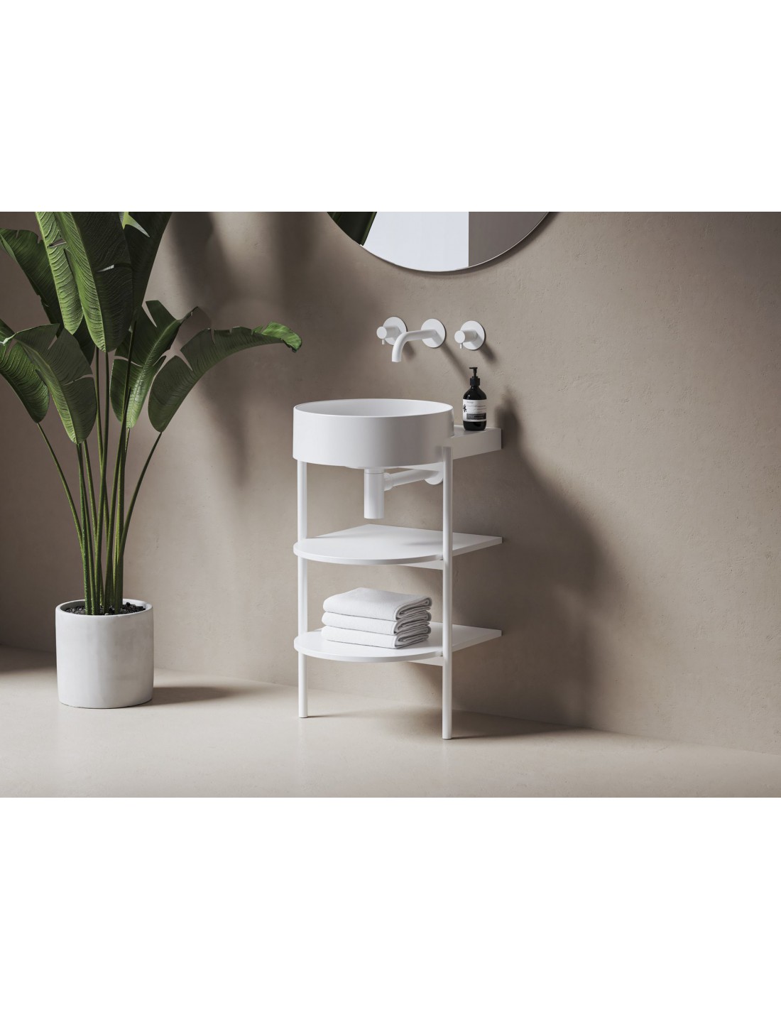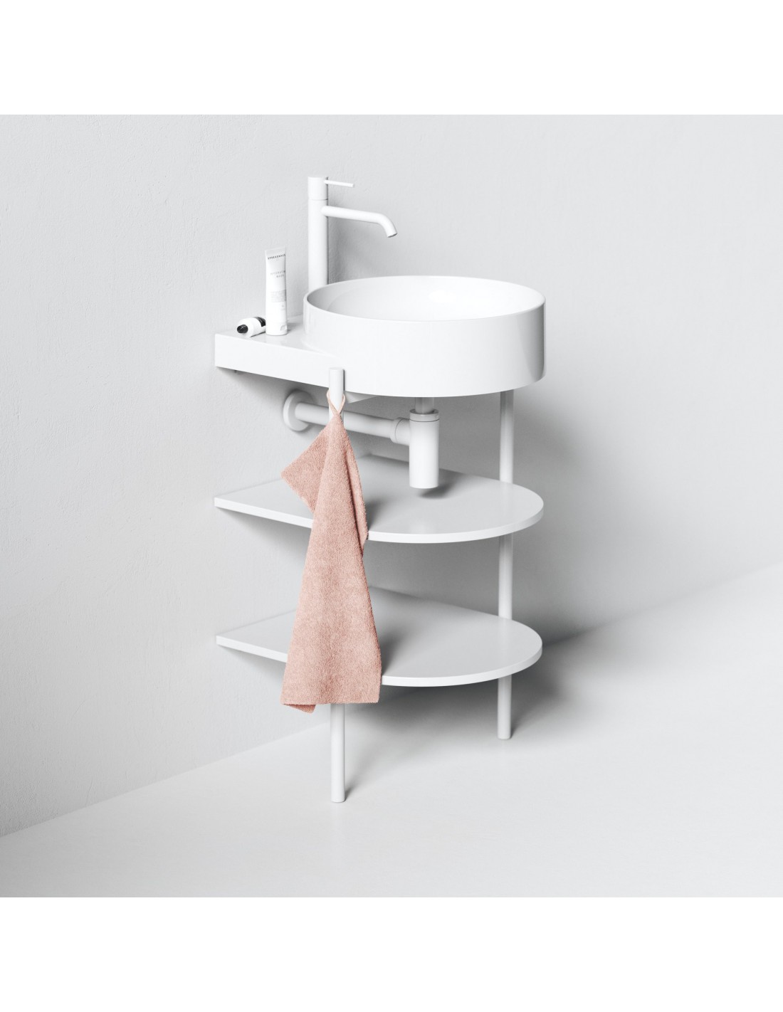 YARD atvirus baldus sudaro stabilios metalinės konstrukcijos ir dvi lentynos. Pastatoma spintelė CS Yard yra specialiai sukurta dizainerių praustuvams Yard 40 / 60 / 80. Konstrukcijoje yra padaryta anga sifonui ir fiksuojamos kojelės. Spintelė atitinka praustuvo formą ir suteikia daug vietos daiktams laikyti. Nedidelis metalinių kojų viršutinės dalies išsikišimas gali būti naudojamas rankšluosčiui pakabinti.