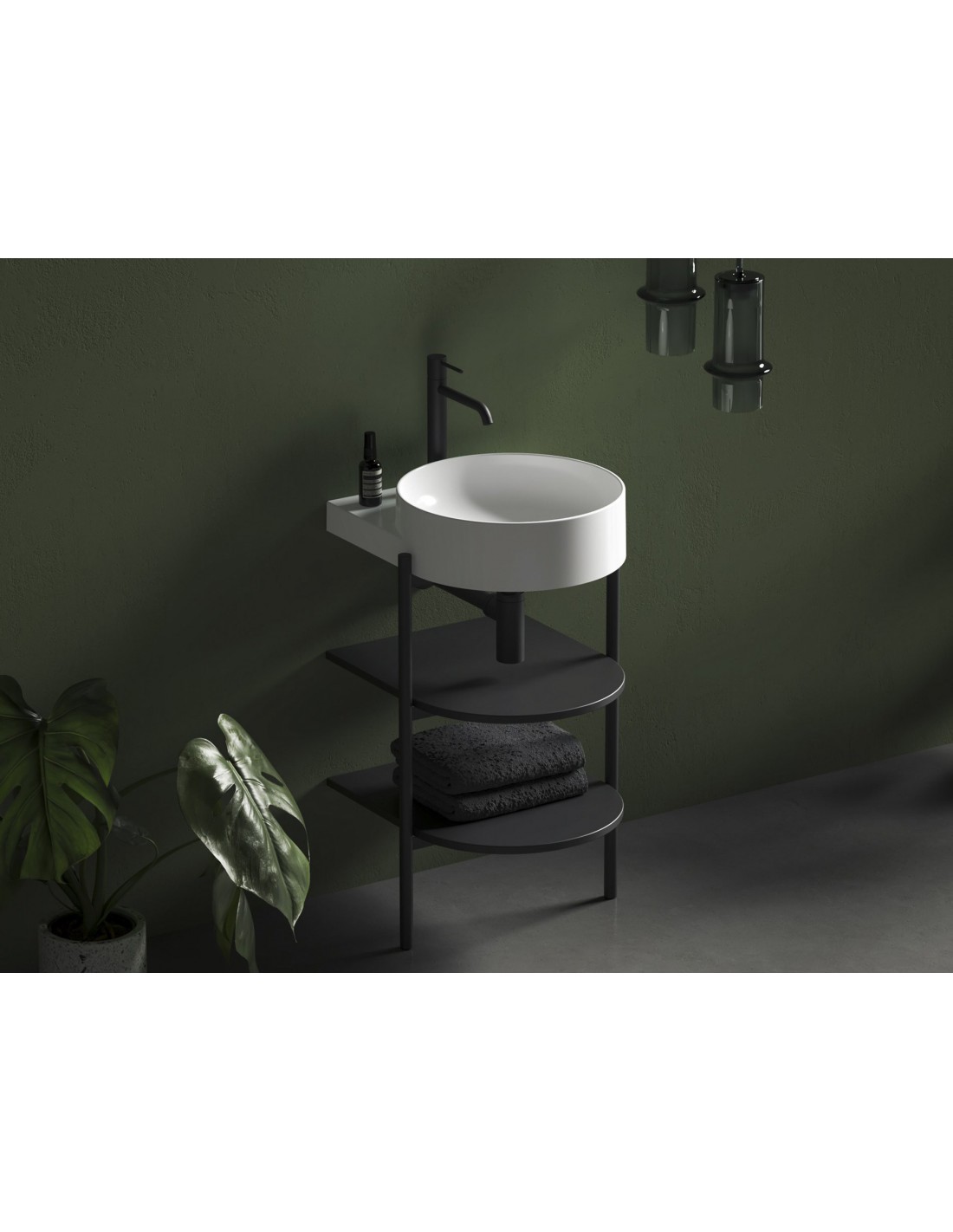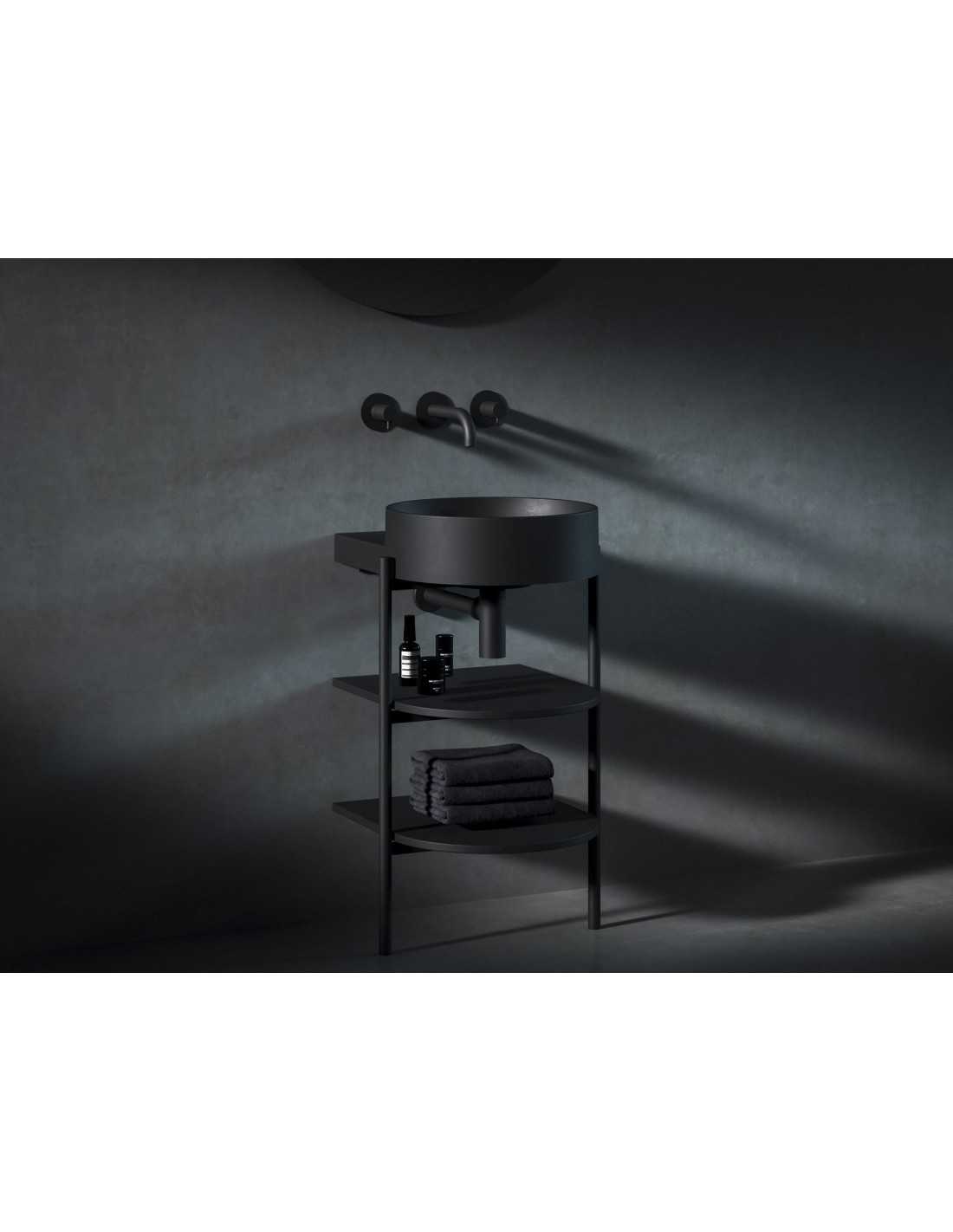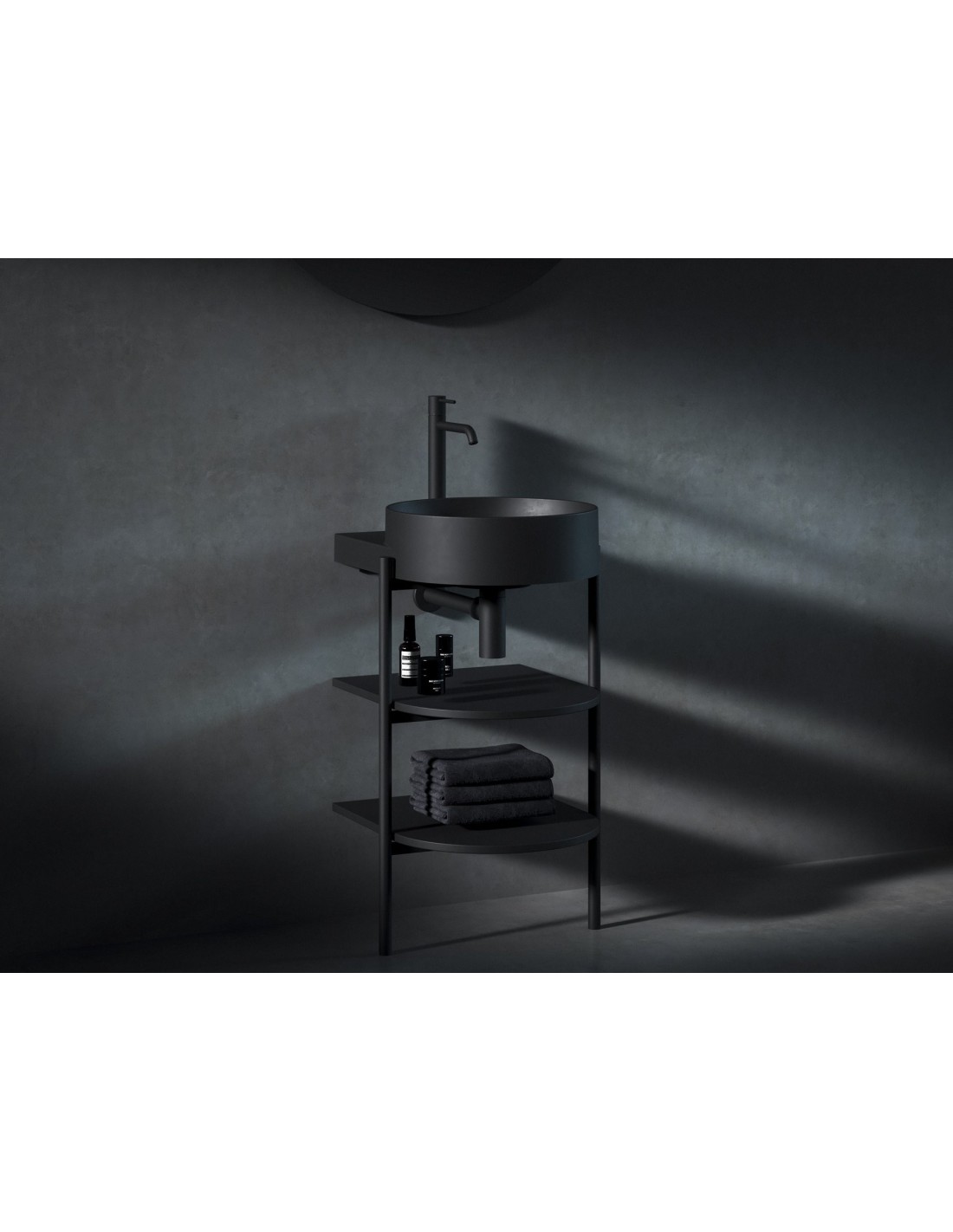 YARD atvirus baldus sudaro stabilios metalinės konstrukcijos ir dvi lentynos. Pastatoma spintelė CS Yard yra specialiai sukurta dizainerių praustuvams Yard 40 / 60 / 80. Konstrukcijoje yra padaryta anga sifonui ir fiksuojamos kojelės. Spintelė atitinka praustuvo formą ir suteikia daug vietos daiktams laikyti. Nedidelis metalinių kojų viršutinės dalies išsikišimas gali būti naudojamas rankšluosčiui pakabinti.
