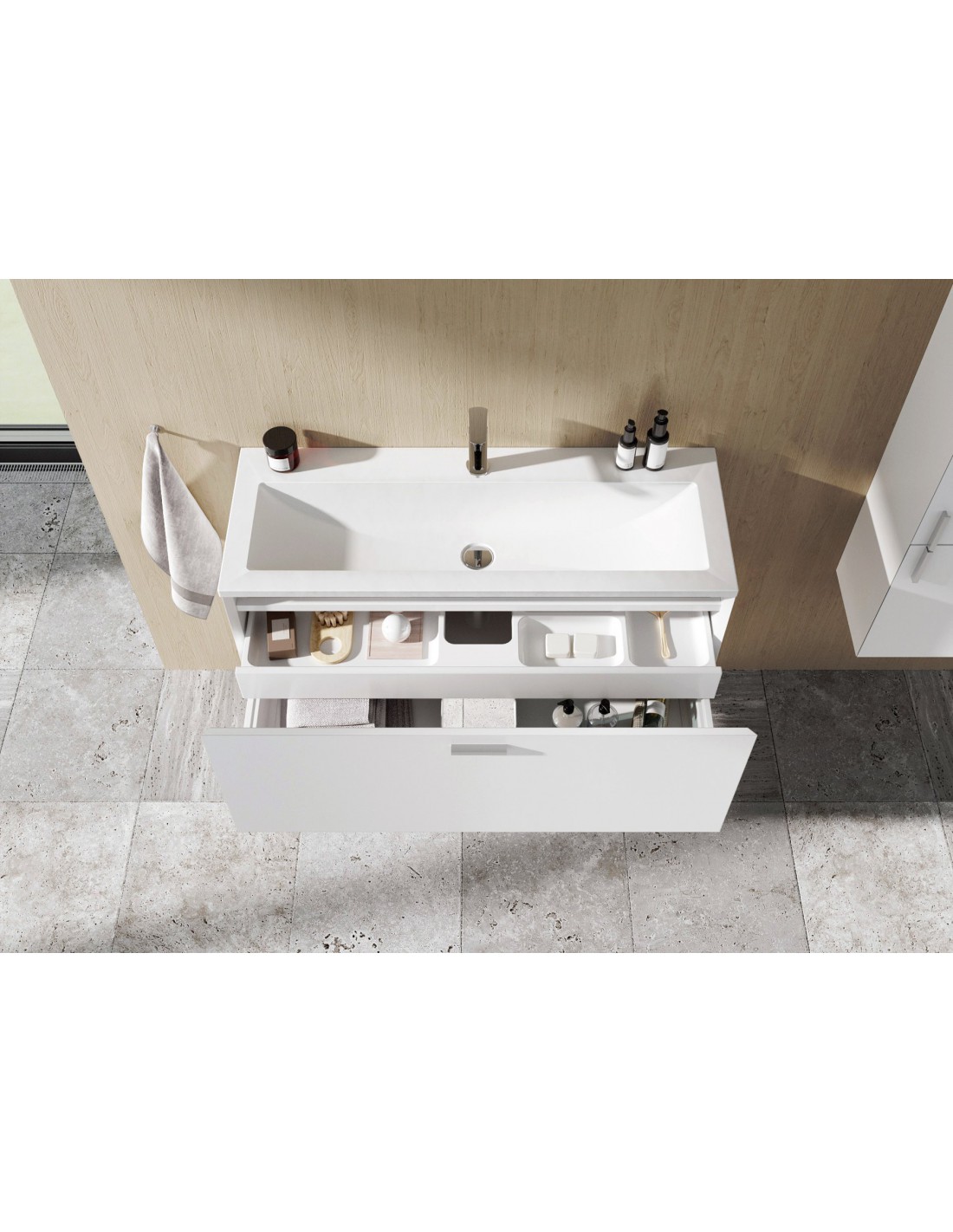 Praustuvo spintelė SD 100 Clear II skirta montuoti kartu su Clear 100 praustuvu. Aukštas stalčius su uždarymo lėtėjimo sistema. Tiekiamas surinkta. Spintelė montuojama ant sienos.